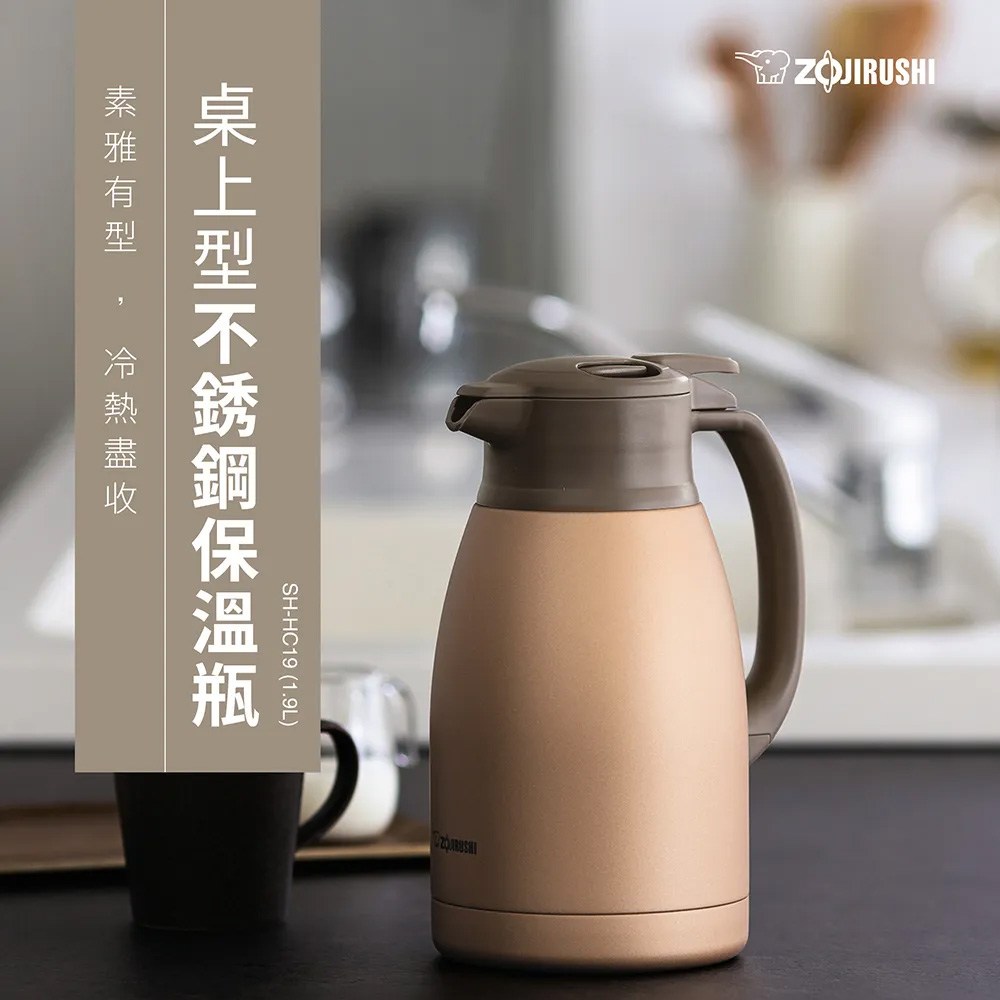 ZOJIRUSHI 象印 SH-HC19-NU 桌上型不銹鋼真空保溫瓶,容量1.9L,是您居家或辦公室的理想選擇。採用優質不鏽鋼材質,堅固耐用且易於清潔,讓您安心使用。真空保溫技術能長時間保持飲品溫度,無論是熱茶、咖啡或冷飲,都能隨時享受最佳風味。寬口徑設計方便加入冰塊或清洗,搭配易於操作的按壓式出水,使用更便利。無論四季,都能隨時享受冷熱飲品,讓生活更舒適。
