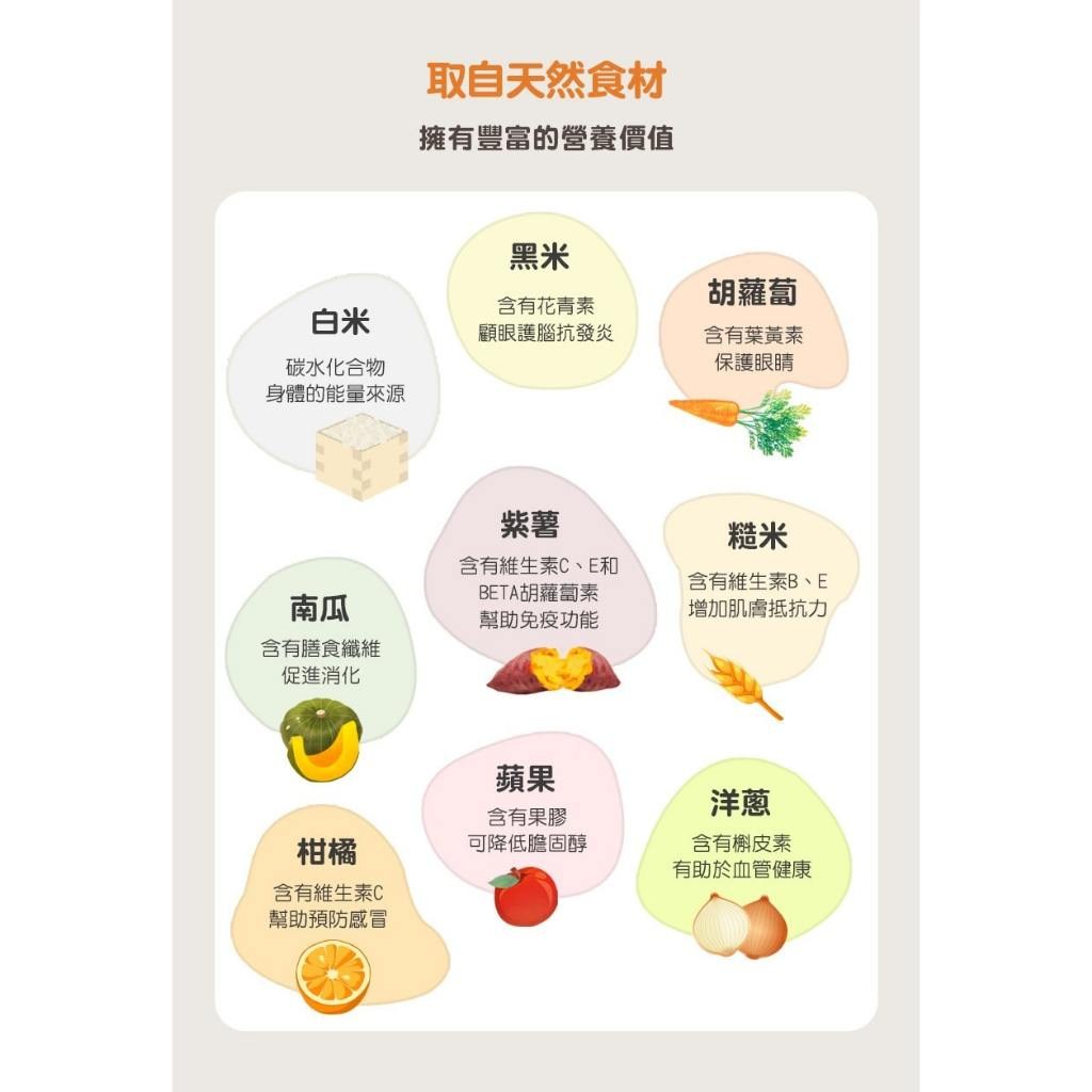 - 無添加糖、鹽等調味料,保留食材原味,減少寶寶的負擔,健康無負擔。