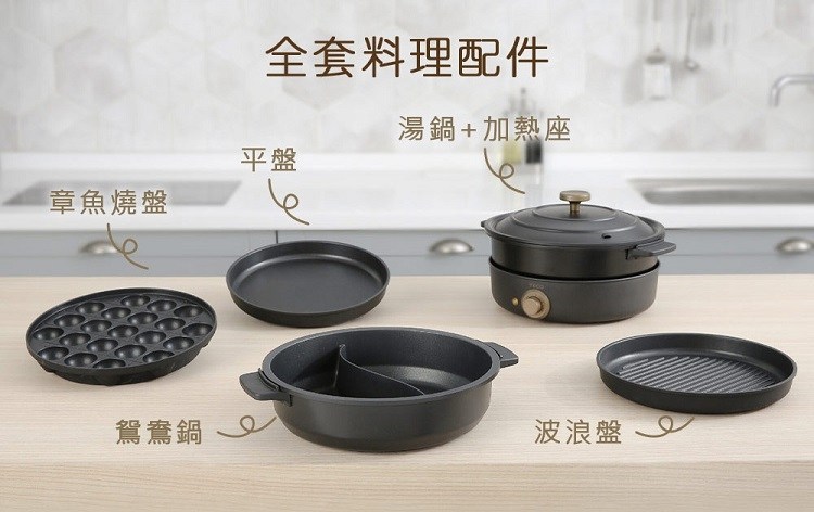 TECO 東元多功能煎烤調理鍋五件組,讓您輕鬆在家享受多樣化的美食體驗。這款多功能鍋具套組包含多種烤盤,無論是章魚燒、煎烤牛排、或是烹煮火鍋,都能輕鬆應對。壓鑄合金鍋蓋能有效鎖住水分,讓料理更加美味營養。可調節溫度設計,精準控制火候,讓您烹飪出專業級的美味。採用摩砂材質塗層,外觀時尚且易於清潔,是現代家庭廚房的理想選擇。