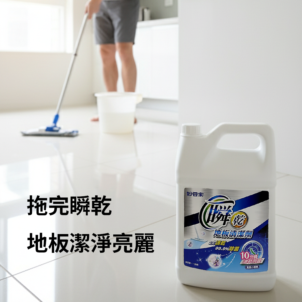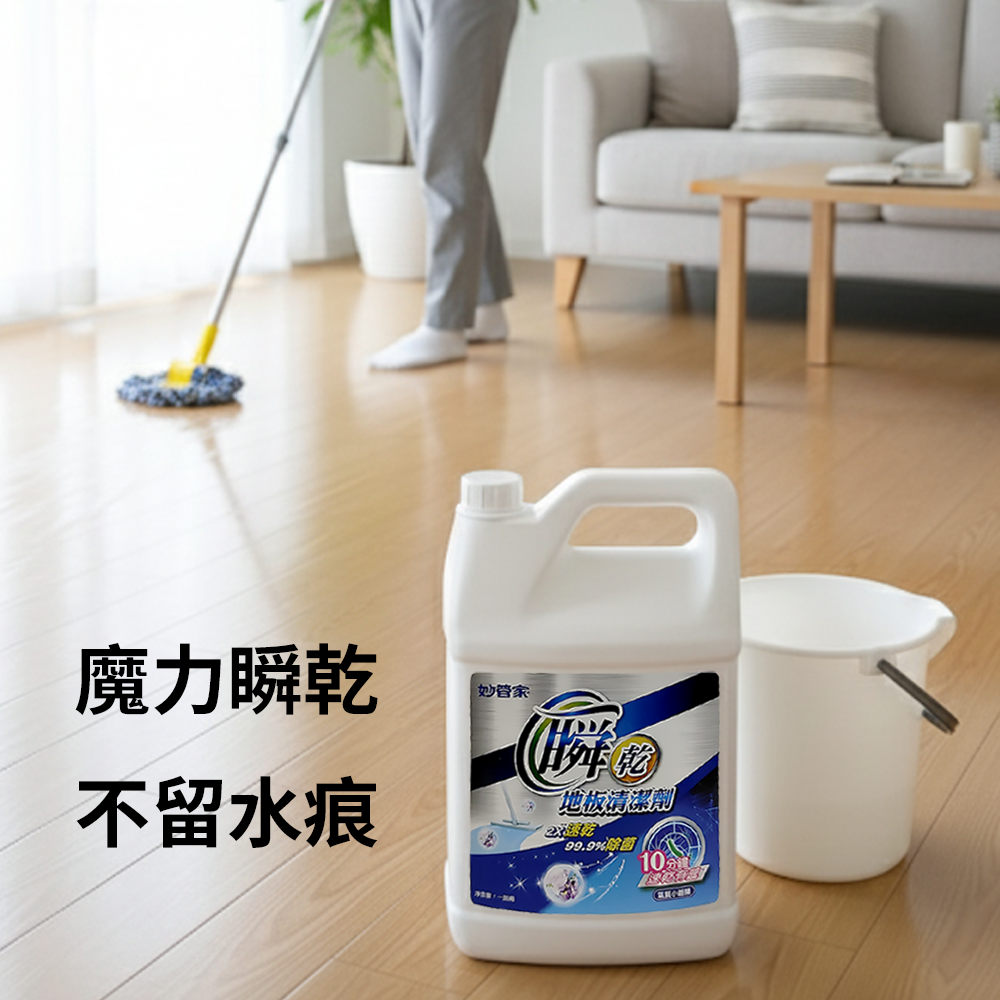 - 妙管家瞬乾配方,清潔後地板迅速乾燥,減少等待時間,讓您快速恢復居家舒適。