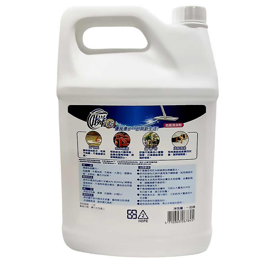 - 一加侖大容量包裝,經濟實惠,適合頻繁清潔使用,讓您長期保持地板潔淨。