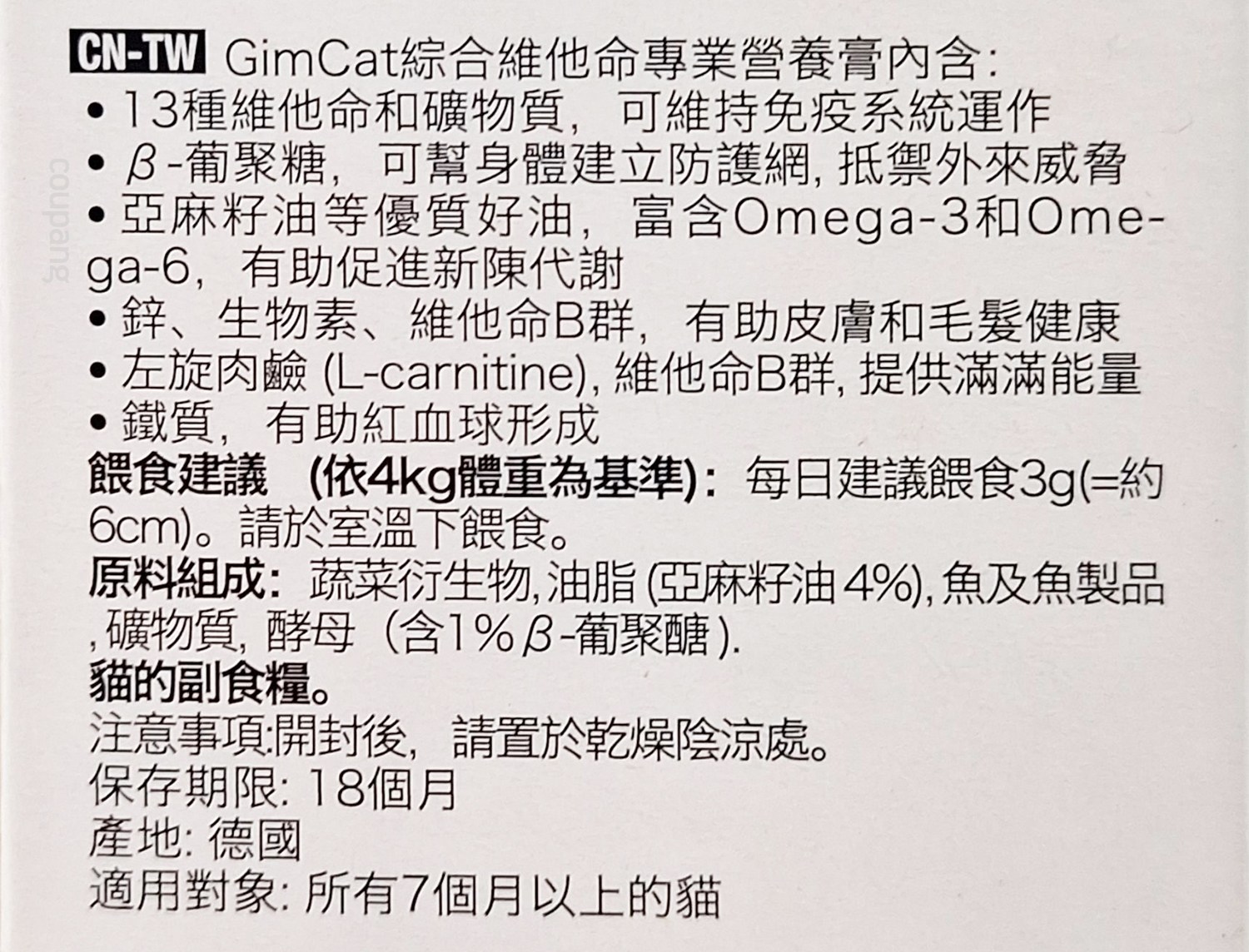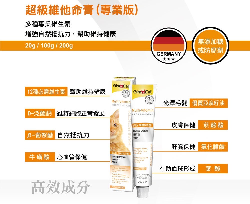 - 這款營養膏能幫助您的愛貓維持免疫系統的健康,讓牠們更有活力去探索世界。