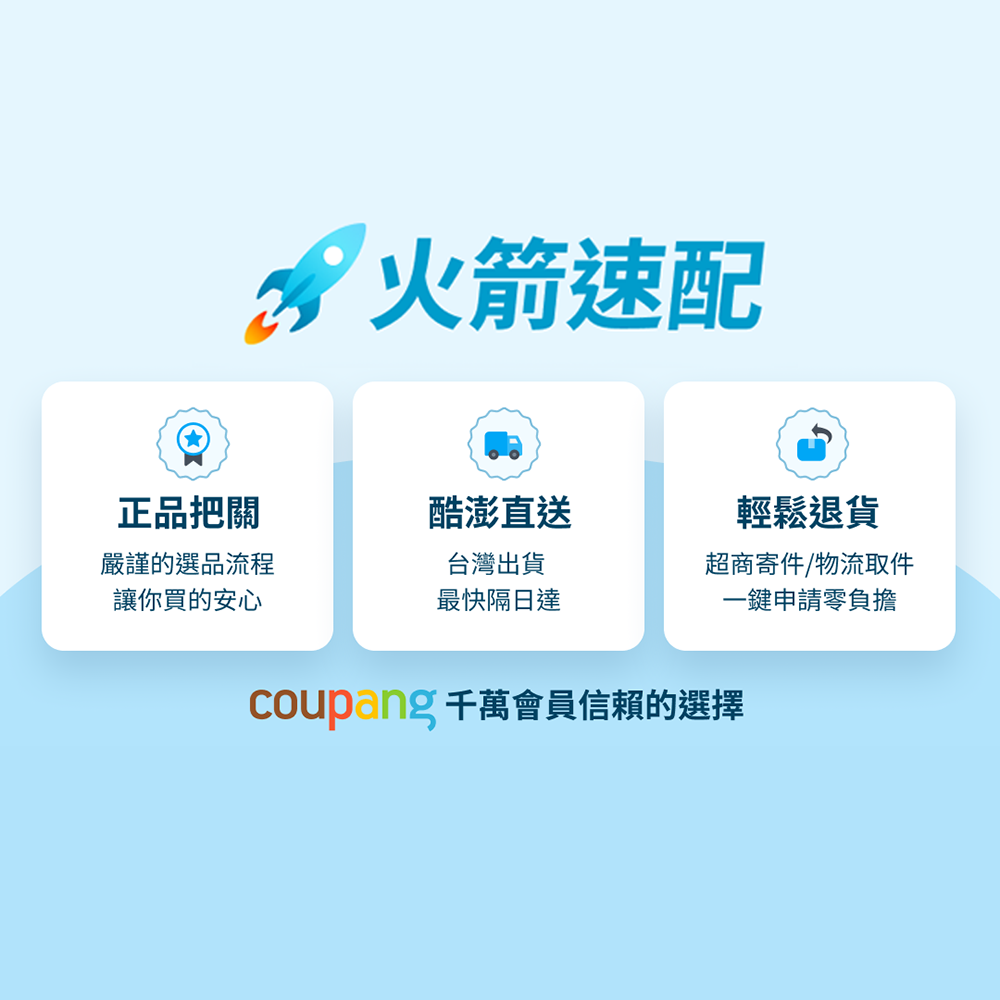 | 運費 | 免運 - 宅配:火箭速配產品訂單價格超過$490免運費 - 超取(全家、7-11):火箭速配產品訂單價格超過$490免運費 - 暫不支援離島配送 |
