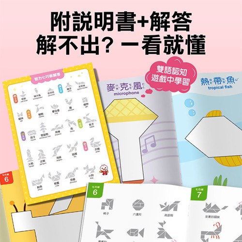 - 激發無限想像,透過七巧板自由拼組,創造獨一無二的幾何圖案,讓孩子盡情發揮創意。