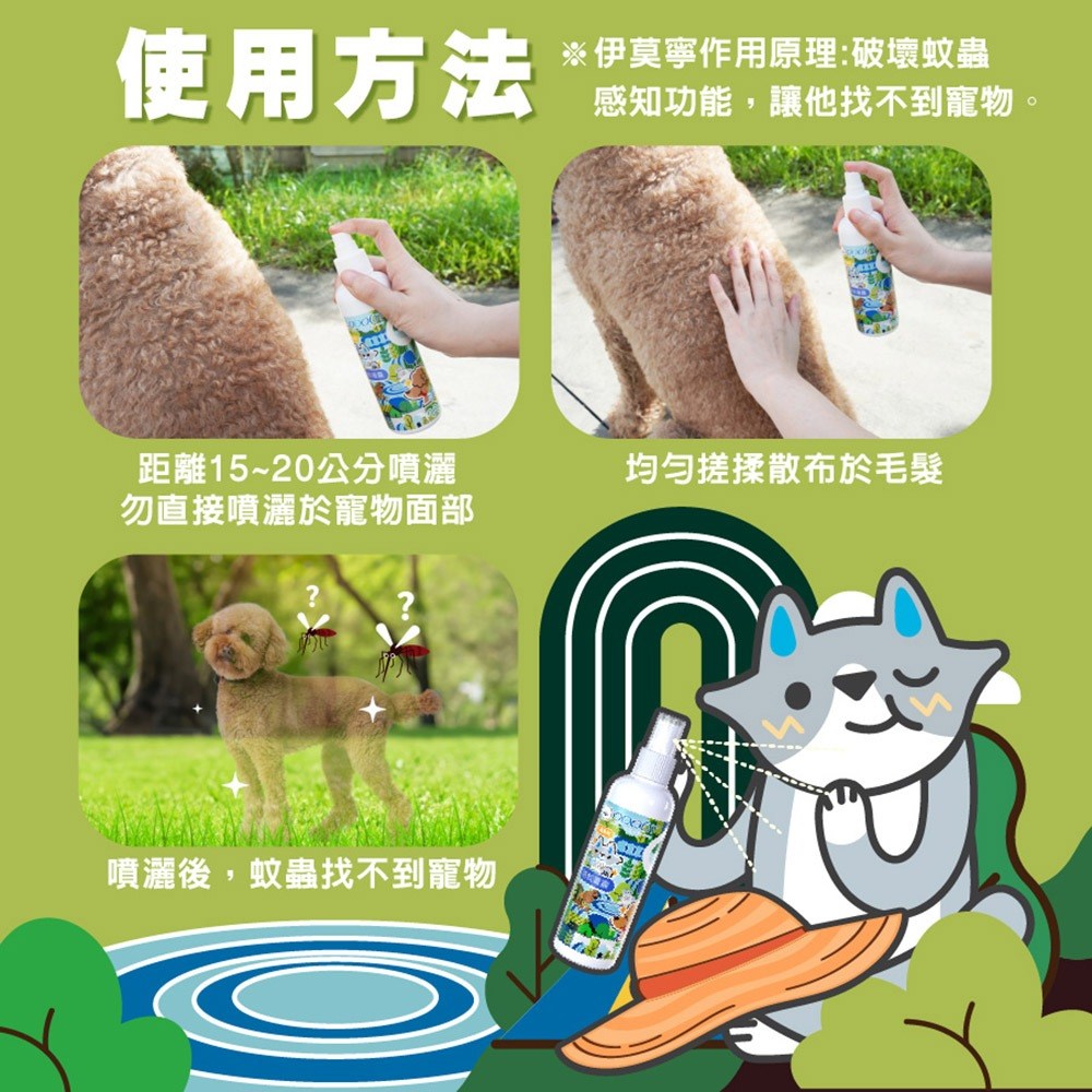 - 輕輕一噴,蚊蟲立即退散,讓寵物享受無干擾的戶外時光,玩得更盡興。