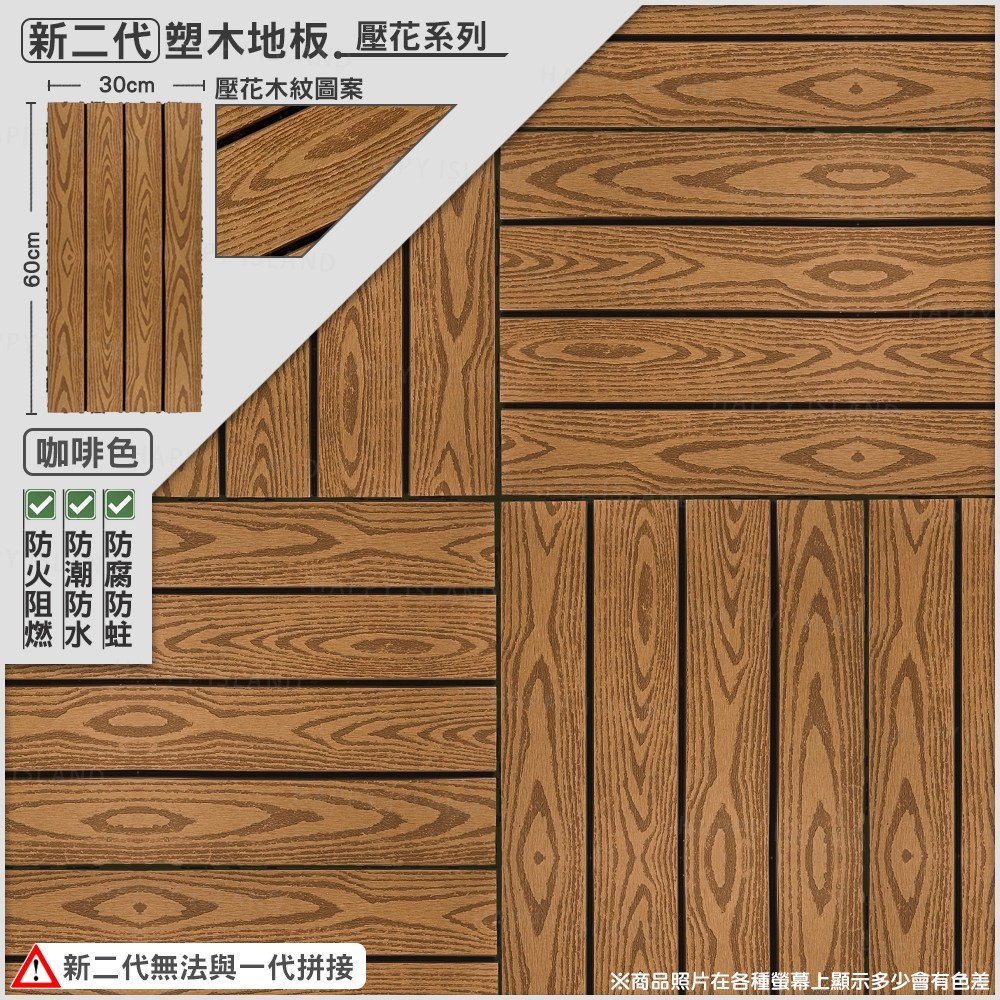 二代塑木地板 直紋杏黃 30 x 60cm 22kg 11片, 1組