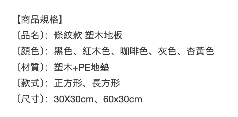 - 傢俱/家居材質: 塑木
