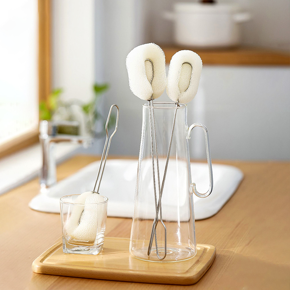 好物良品 日本不銹鋼可替換保溫杯清潔海綿杯刷套組 刷子+仿生絲瓜海綿, 白色 + 銀色, 1組