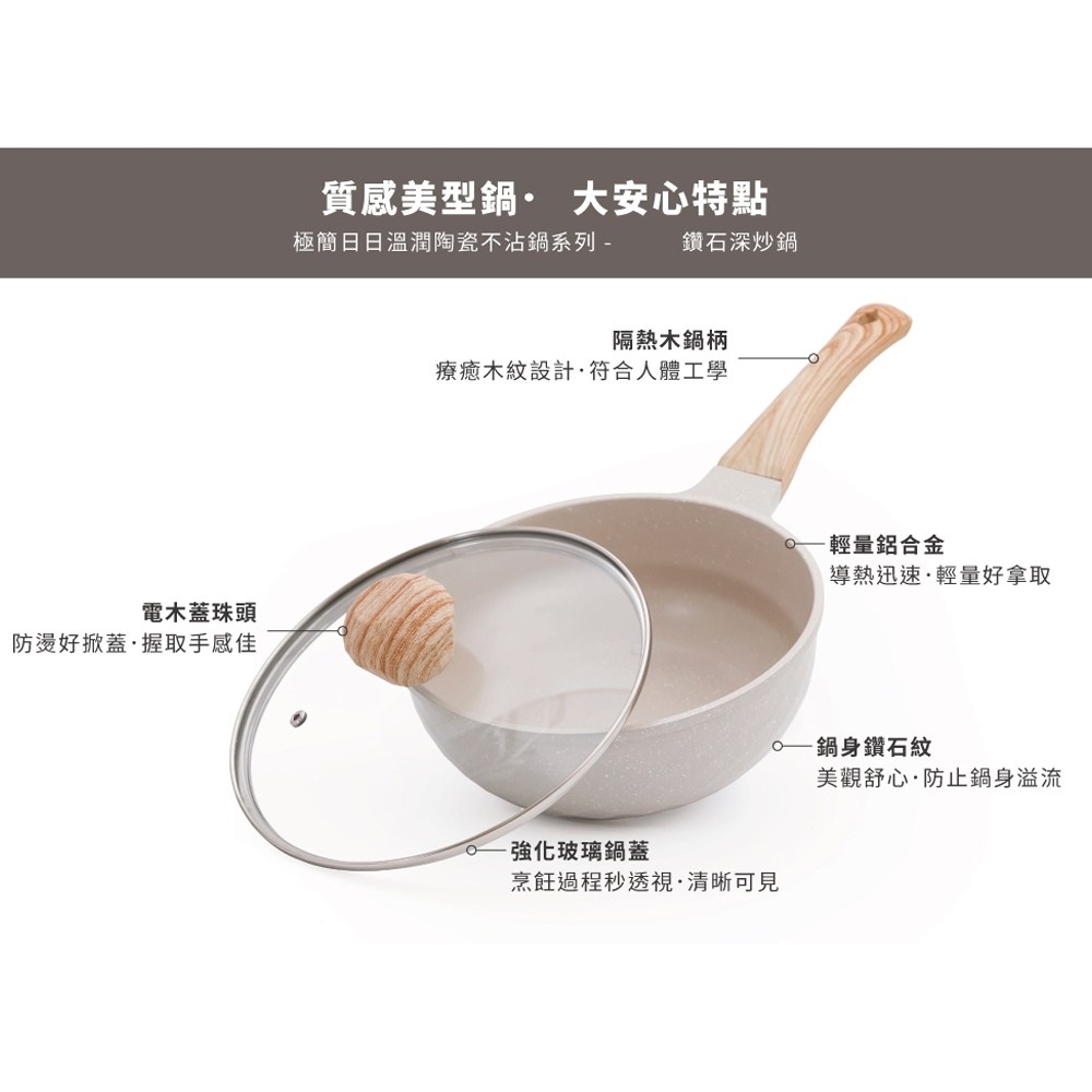 - 陶瓷不沾塗層,烹飪時食材不易黏鍋,輕鬆翻炒,享受烹飪樂趣。