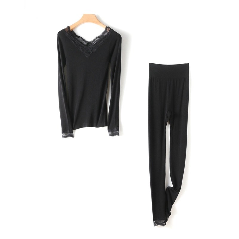 這款日本超薄發熱衣套裝,包含一件蕾絲上衣和一件褲子,讓您在寒冷天氣中也能保持溫暖和時尚。V領設計搭配精緻蕾絲,增添女性魅力,長袖設計提供全面保暖。這款套裝採用超薄發熱材質,輕盈舒適,可水洗,方便日常護理。黑色經典百搭,適合各種場合穿著。一套包含上下衣,讓您輕鬆搭配,展現優雅氣質。