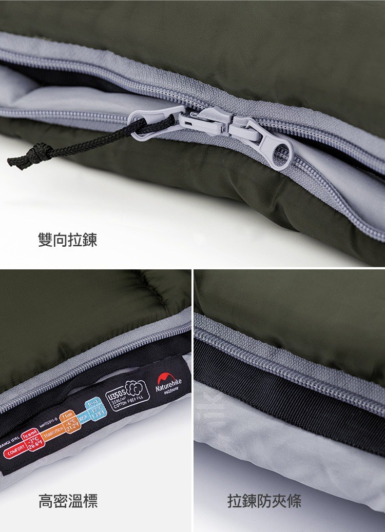 Naturehike U系列信封帶帽睡袋,為您提供舒適溫暖的戶外睡眠體驗。採用陶泥灰配色,尺寸為190 + 30 x 75公分,U350型號重量僅1.7公斤,輕巧易攜。此款睡袋適用於春、秋、冬季,舒適溫度範圍為1°C,極限溫度可達-13°C,讓您在寒冷環境中也能安心入睡。採用聚酯纖維面料搭配防潑水塗層,內襯填充定型中空棉,保暖透氣。信封式設計可完全展開作為被子或睡墊使用,帶帽設計提供額外保暖,是您露營、登山等戶外活動的理想選擇。