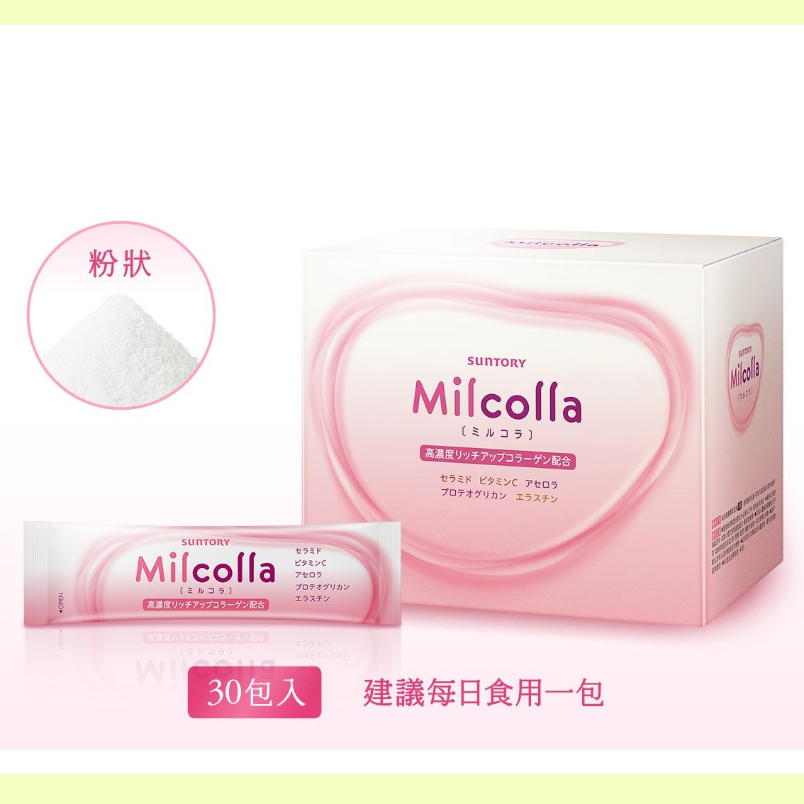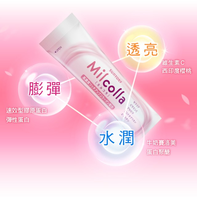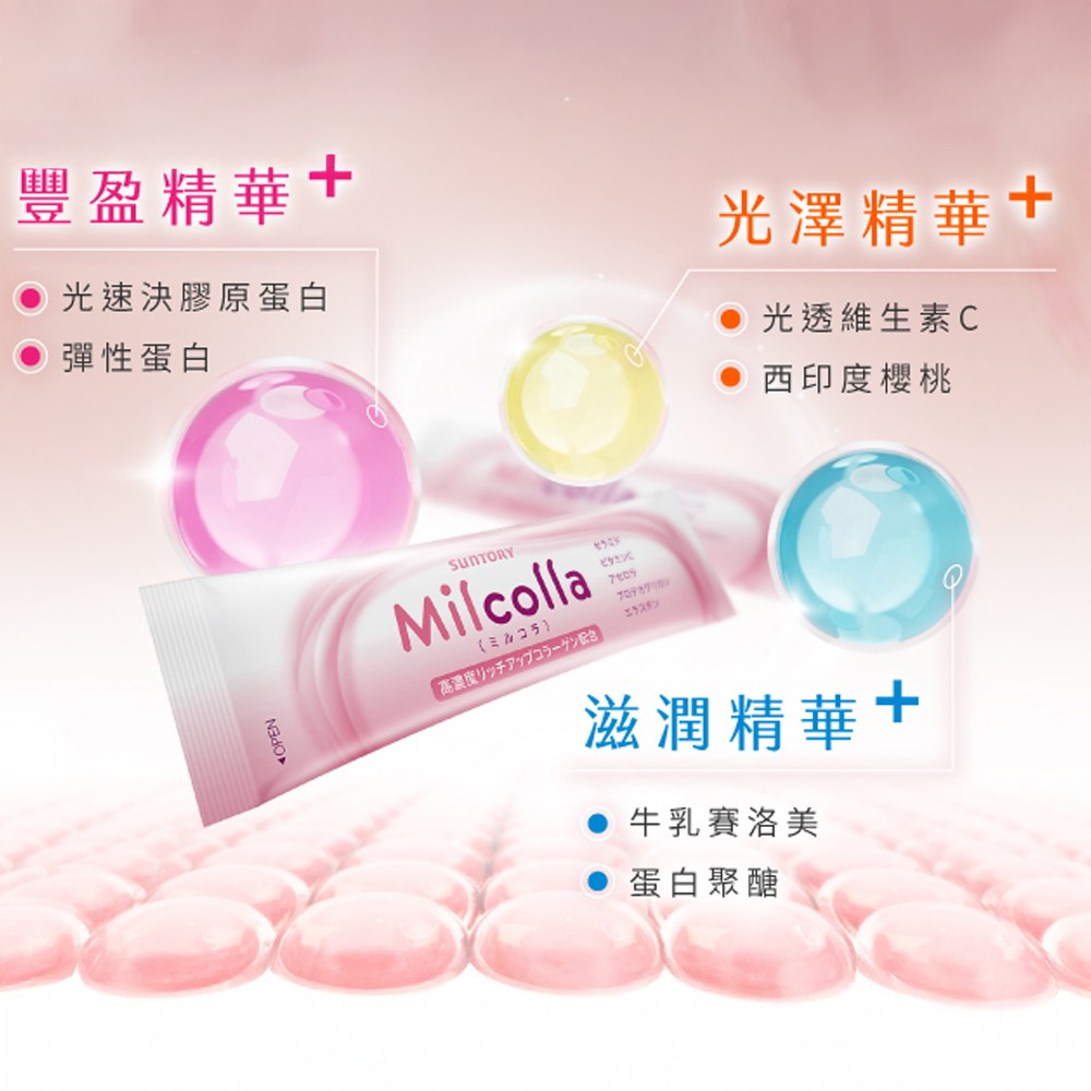 Suntory Milcolla 蜜露珂娜膠原蛋白,每盒包含30包獨立包裝的膠原蛋白粉末,每份重195克。這款保健食品專為追求美麗與健康的您設計,蘊含高濃度膠原蛋白,有助於提升肌膚彈性與光澤。Milcolla 蜜露珂娜膠原蛋白更添加了賽洛美、維生素C、西印度櫻桃等成分,為您提供多重滋養,由內而外煥發年輕光采。Suntory 作為知名品牌,其產品經過嚴格品質把關,讓您安心食用,輕鬆補充每日所需的膠原蛋白,維持健康美麗。