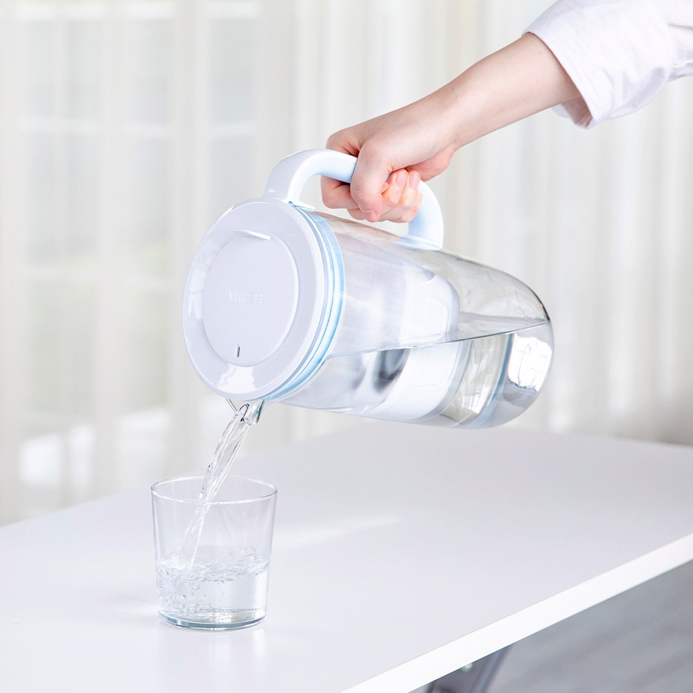 - 淺藍色玻璃壺身設計時尚簡約,為您的廚房增添美感,2.5L容量適合小家庭使用,享受優質淨水生活。