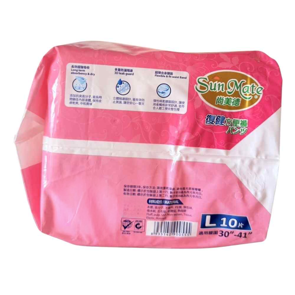 尚美德成人褲型紙尿褲,L碼,每箱包含6包,每包10片,為行動不便或術後復健人士提供舒適便捷的衛生護理方案。此款褲型紙尿褲採用日本高效吸收體,能迅速吸收尿液,保持乾爽,減少皮膚刺激,讓您日間夜間都安心無憂。立體防漏隔邊設計,搭配超彈性腰圍,貼合身形,穿脫方便,如同普通內褲般舒適自在。添加抗菌消臭分子,中和異味,保持清新,給予您全方位的呵護。