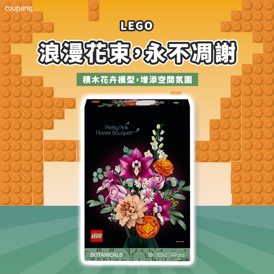 隆重介紹樂高植物系列最新力作:粉紅花束 (10342)。這款專為成人設計的盒組包含749個精緻零件,讓您能全心投入,享受一段充滿創意與專注的靜心時光。完成後的花束色彩繽紛,層次豐富,包含多種花形,可為任何空間帶來持久的自然之美。無論是作為犒賞自己的獨特擺飾,或是送給摯愛的創意好禮,它都是絕佳選擇。這份永不凋謝的美麗,將成為您家中一道亮麗的風景線。(請注意:本產品不含花瓶)