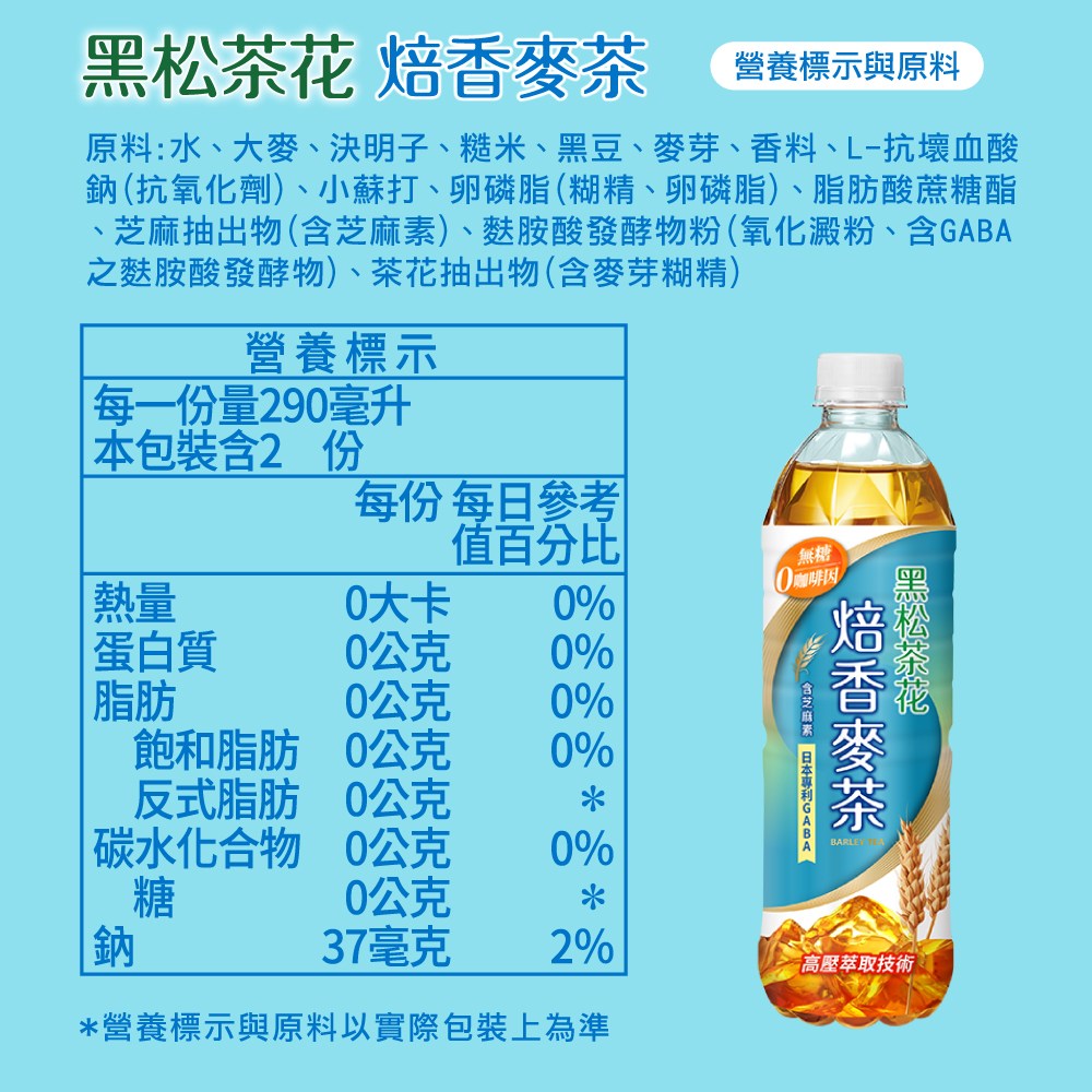 黑松茶花焙香麥茶,嚴選優質大麥,經過獨特焙炒工藝,散發出濃郁迷人的麥香。無糖、無咖啡因、無熱量,健康零負擔,讓您隨時都能安心暢飲。更添加日本專利GABA及珍貴芝麻素,為您的健康加分。採用高壓萃取技術,完整保留大麥精華,口感溫潤甘甜,是您解渴、放鬆的最佳選擇。580ml大容量,48瓶裝,適合全家大小一同分享。