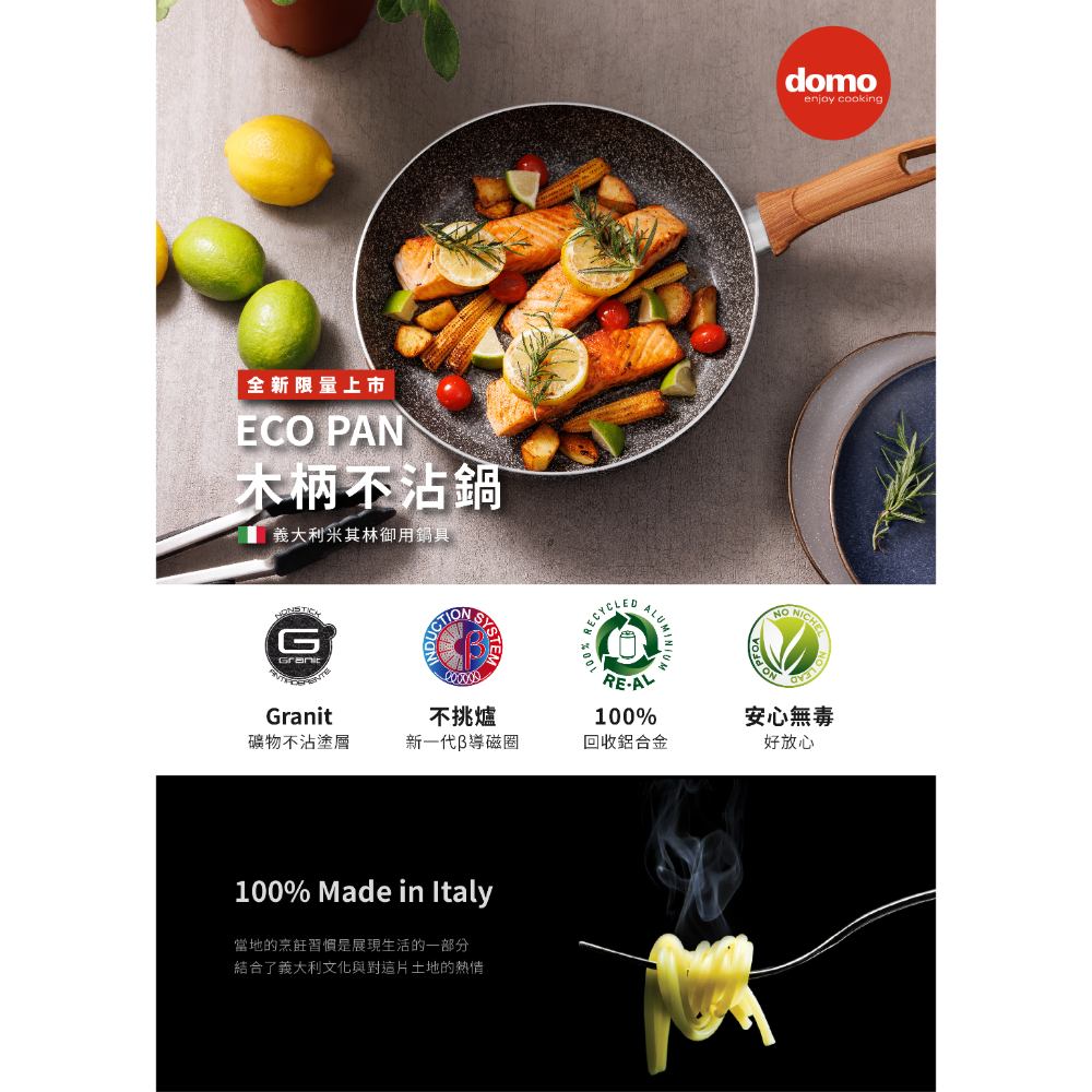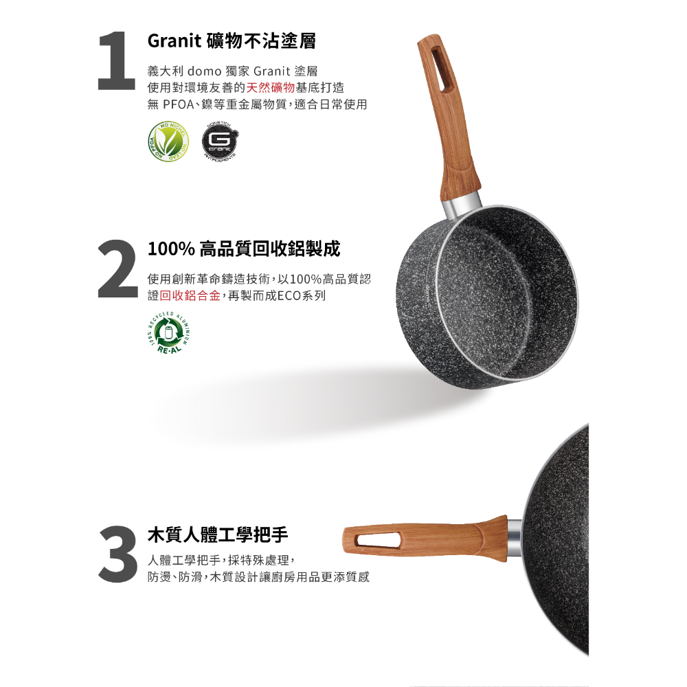 義大利 domo ECO 單柄湯鍋 16cm 不沾塗層 輕巧易用, 1個, 單一顏色