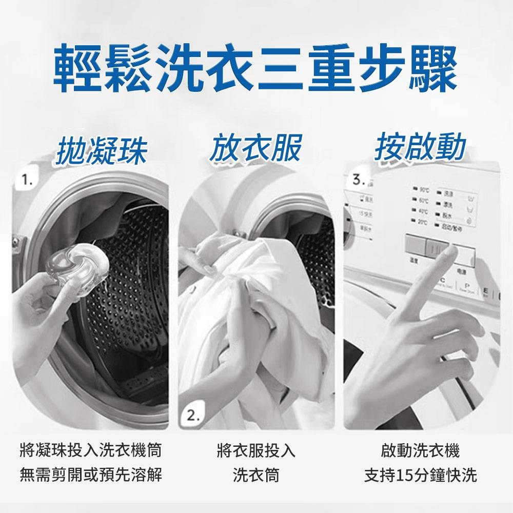 - 一顆膠囊即可輕鬆搞定大量衣物,省時省力,洗衣變得更簡單。