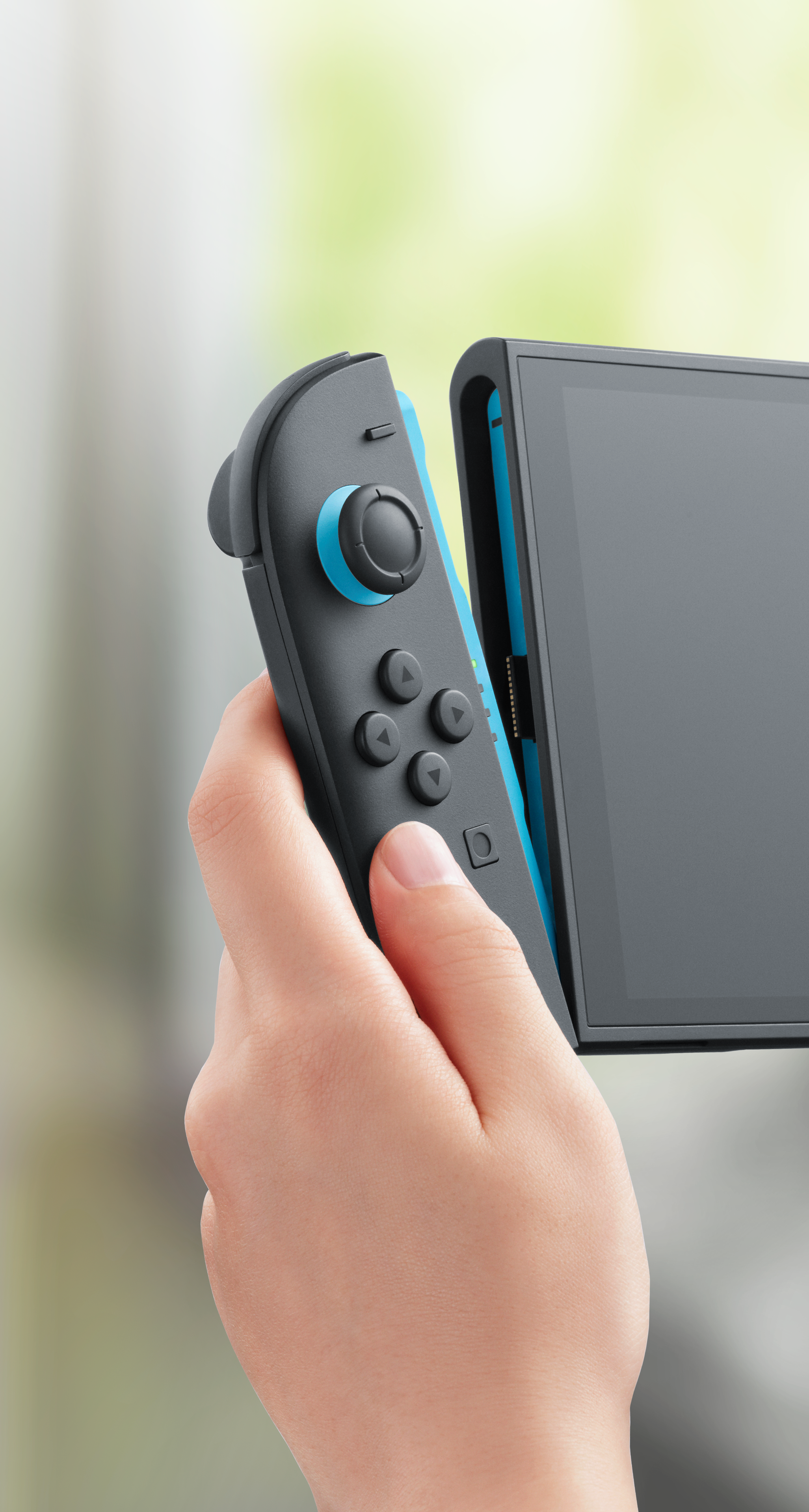 螢幕更大、色彩更鮮明、動作更流暢。利用磁鐵「啪嗒」一聲就能安裝好新Joy-Con。它同時也能當成滑鼠。此外,還有「2」才能遊玩的新遊戲。Nintendo Switch的遊戲也能遊玩。※部分軟體除外。