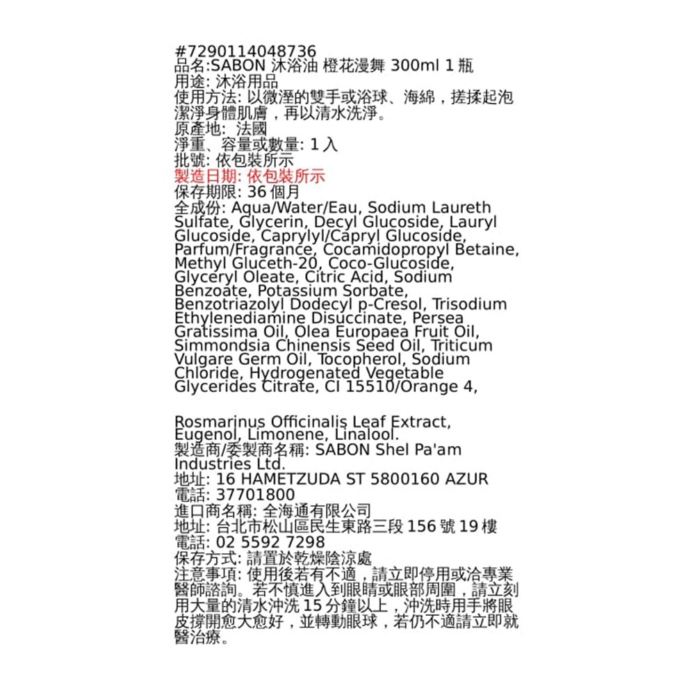 - 沐浴油質地細緻,遇水即化為柔滑泡沫,輕鬆洗淨身體,留下淡淡的橙花香氣。