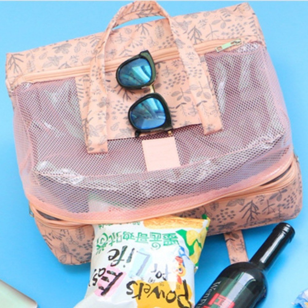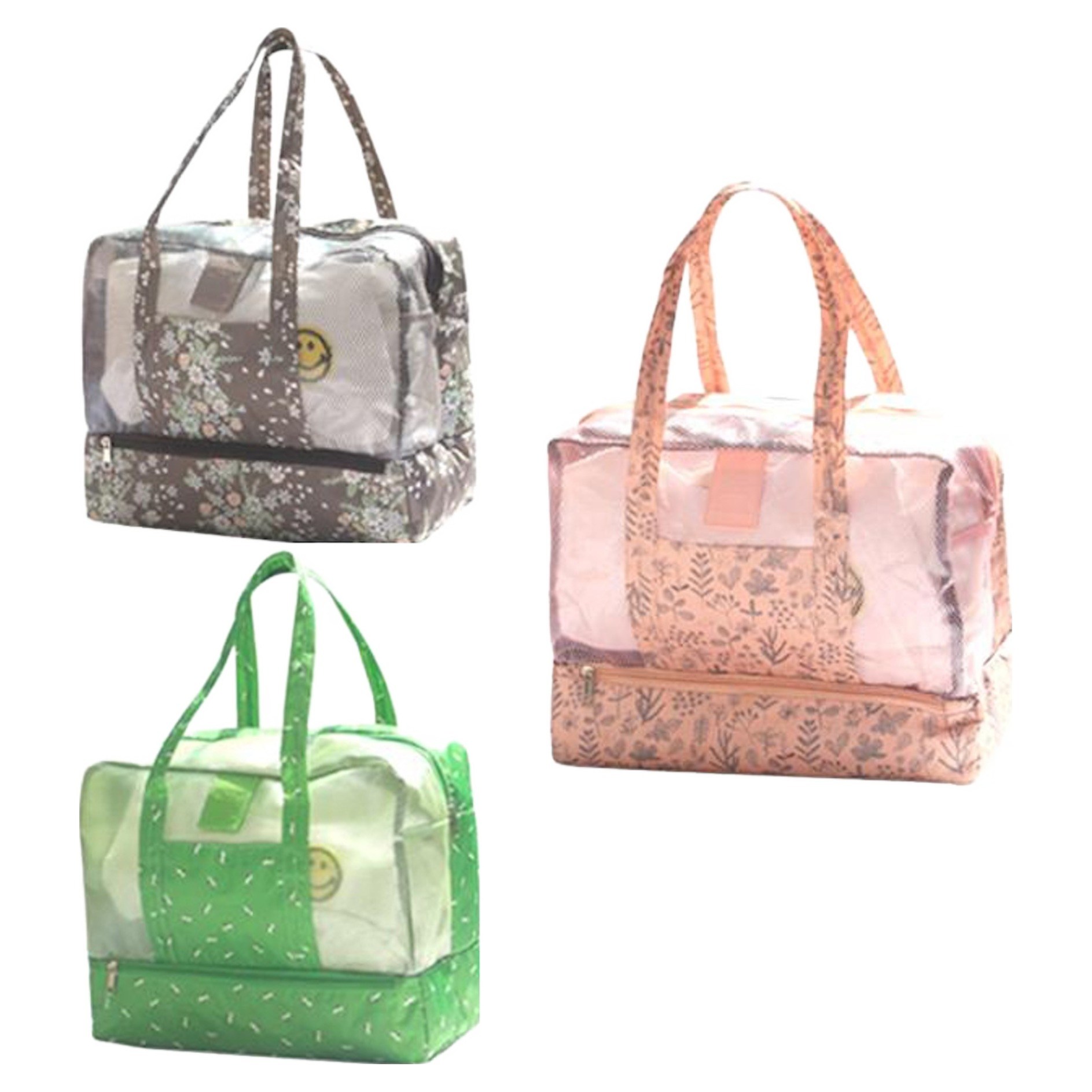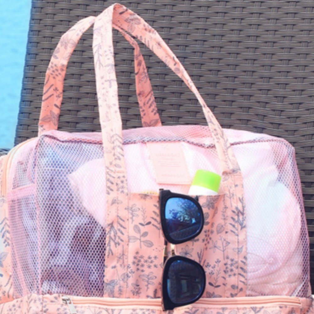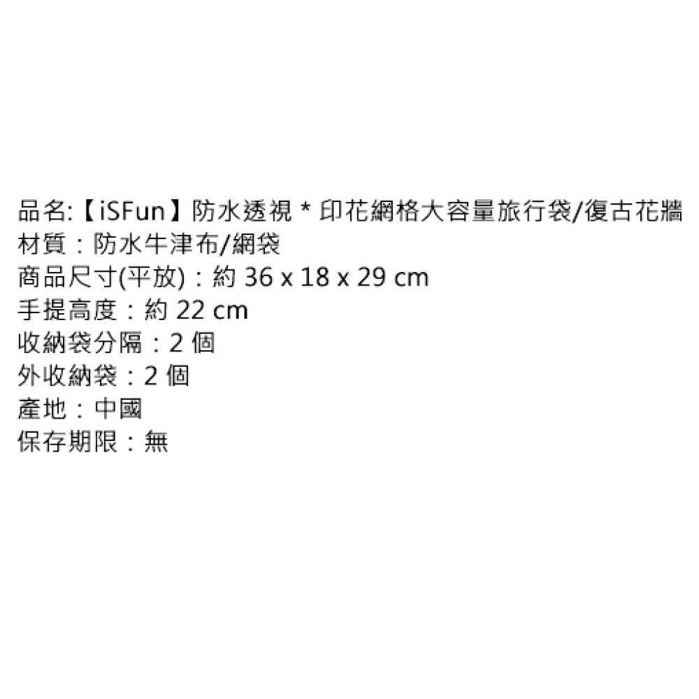 防水透視 印花網格大容量旅行袋, 復古花牆