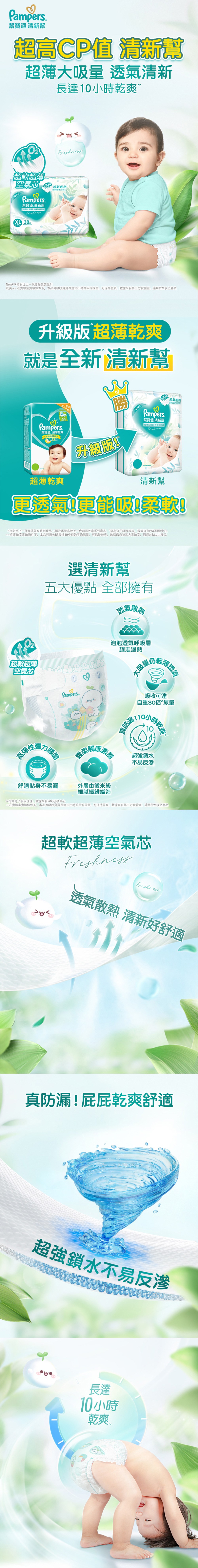 - 全新清新幫,超薄透氣設計,讓寶寶屁屁享受乾爽舒適,告別悶熱感。