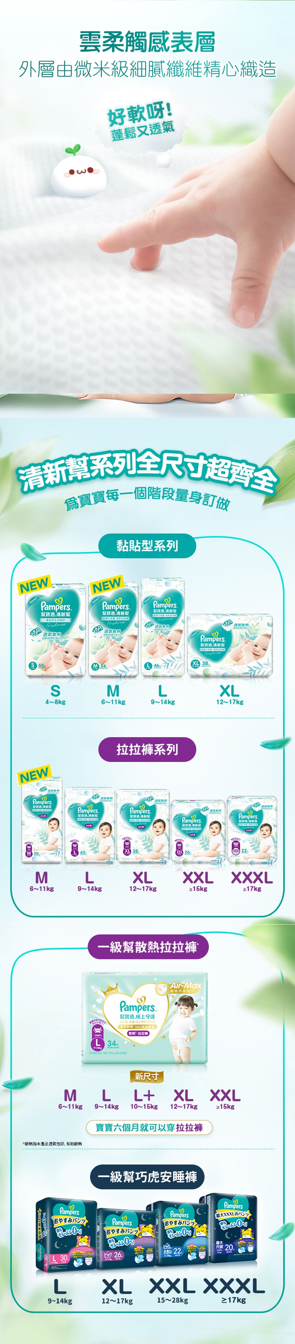 - 全新清新幫系列,採用超薄透氣設計,讓寶寶告別悶熱,享受乾爽舒適的體驗。
