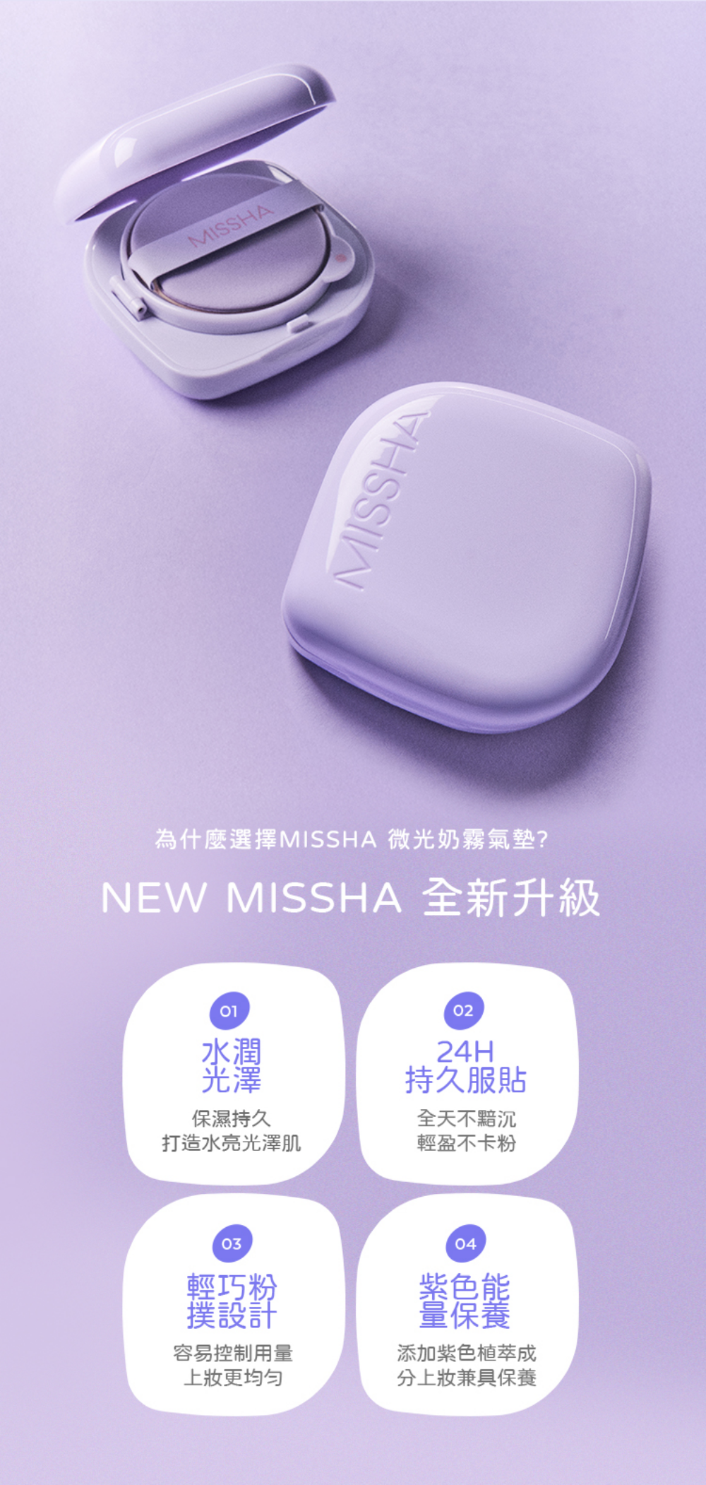 MISSHA微光奶霧氣墊粉餅No.21,打造自然透亮妝感,讓肌膚散發健康光澤。這款氣墊粉餅具有SPF50+ PA++++的高防曬係數。其獨特配方能長效保濕,使妝容持久服貼,不易脫妝。輕盈的質地,多次疊擦也不厚重,呈現薄透自然的妝感。添加多種植物萃取,上妝同時呵護肌膚,讓您擁有健康美麗的妝容。