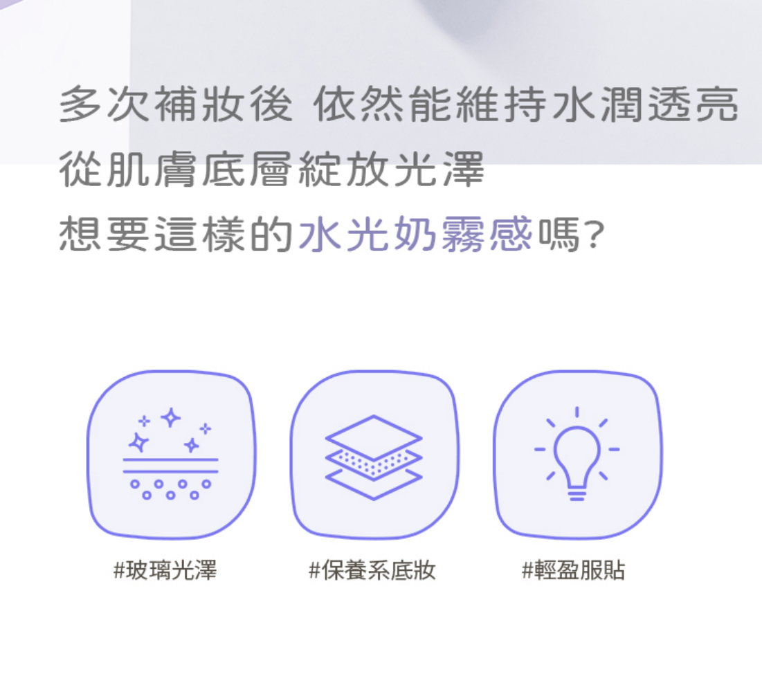 - 蘊含保濕精華,上妝同時深層滋潤,告別乾燥卡粉,打造水潤透亮奶油肌。