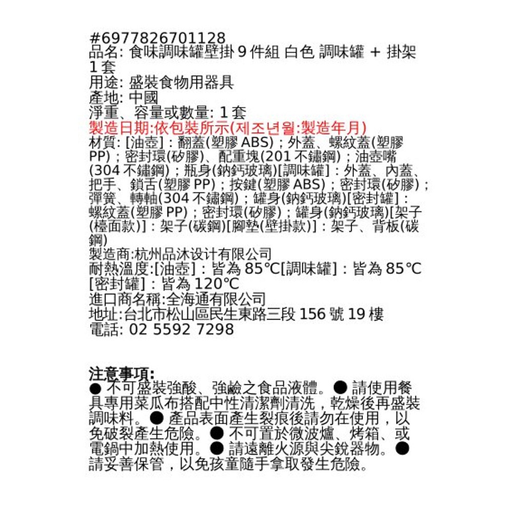 食味調味罐壁掛9件組 白色, 1套, 調味罐 + 掛架