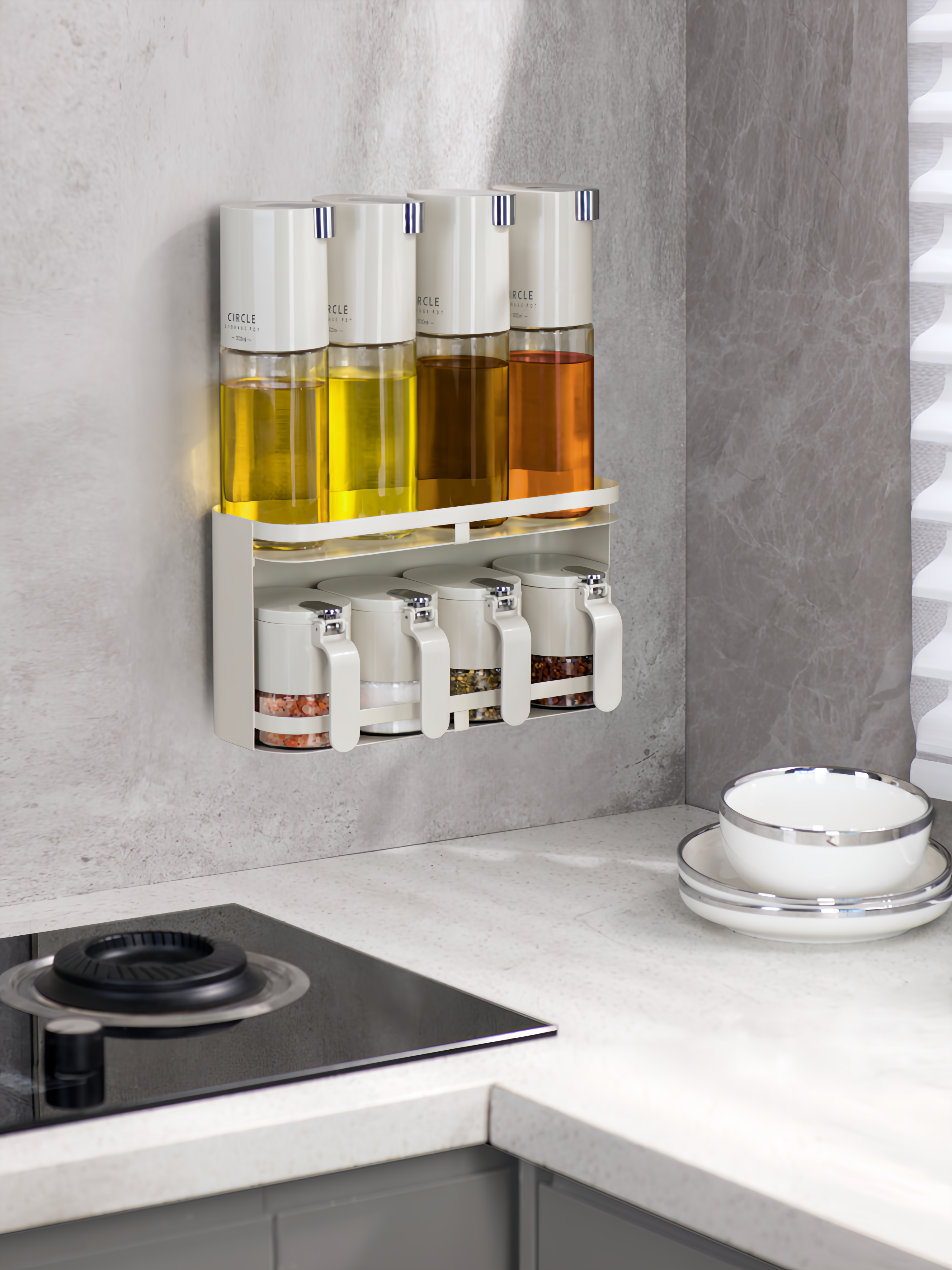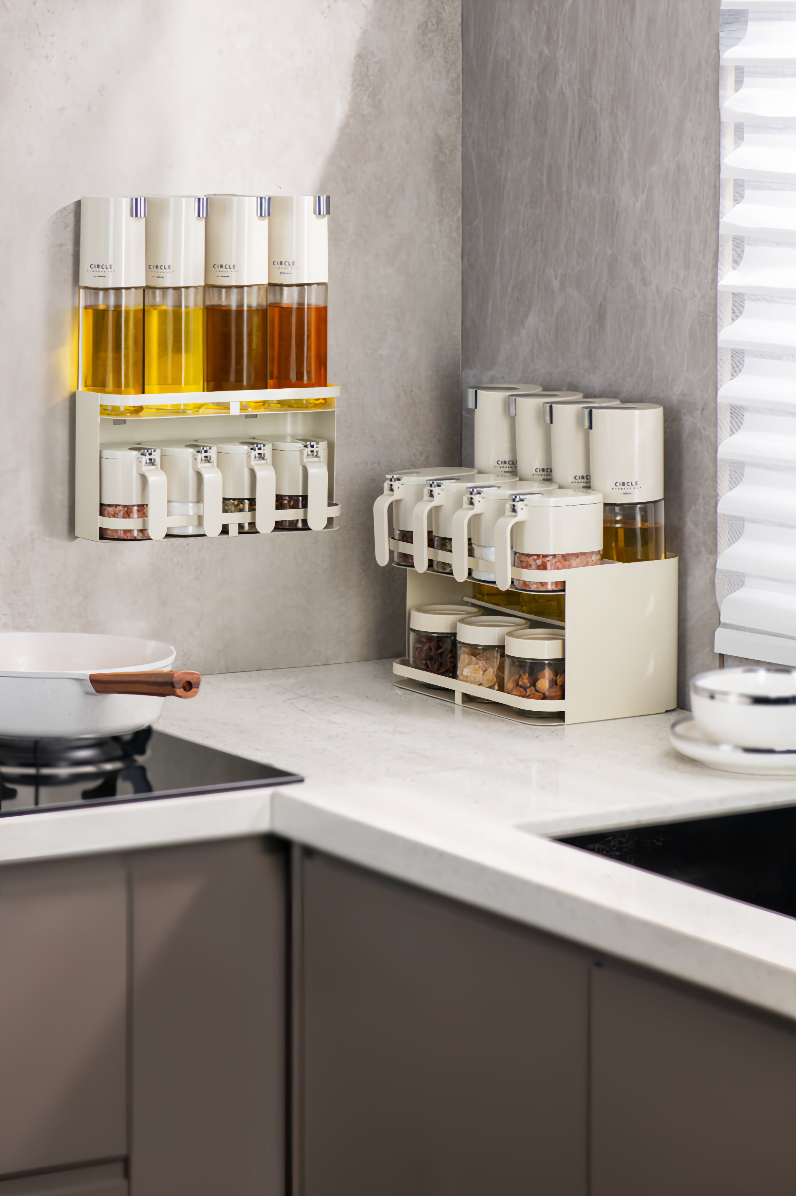 - 壁掛設計節省空間,讓廚房檯面保持整潔,輕鬆收納各式調味品。