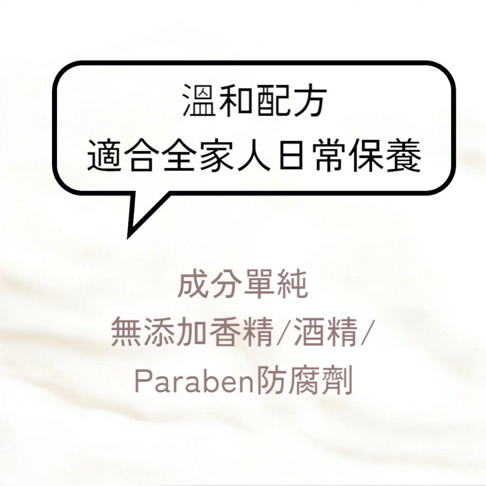 - 質地細緻易吸收,清爽不黏膩,臉部與身體皆可使用,為全家人的肌膚提供溫和呵護。