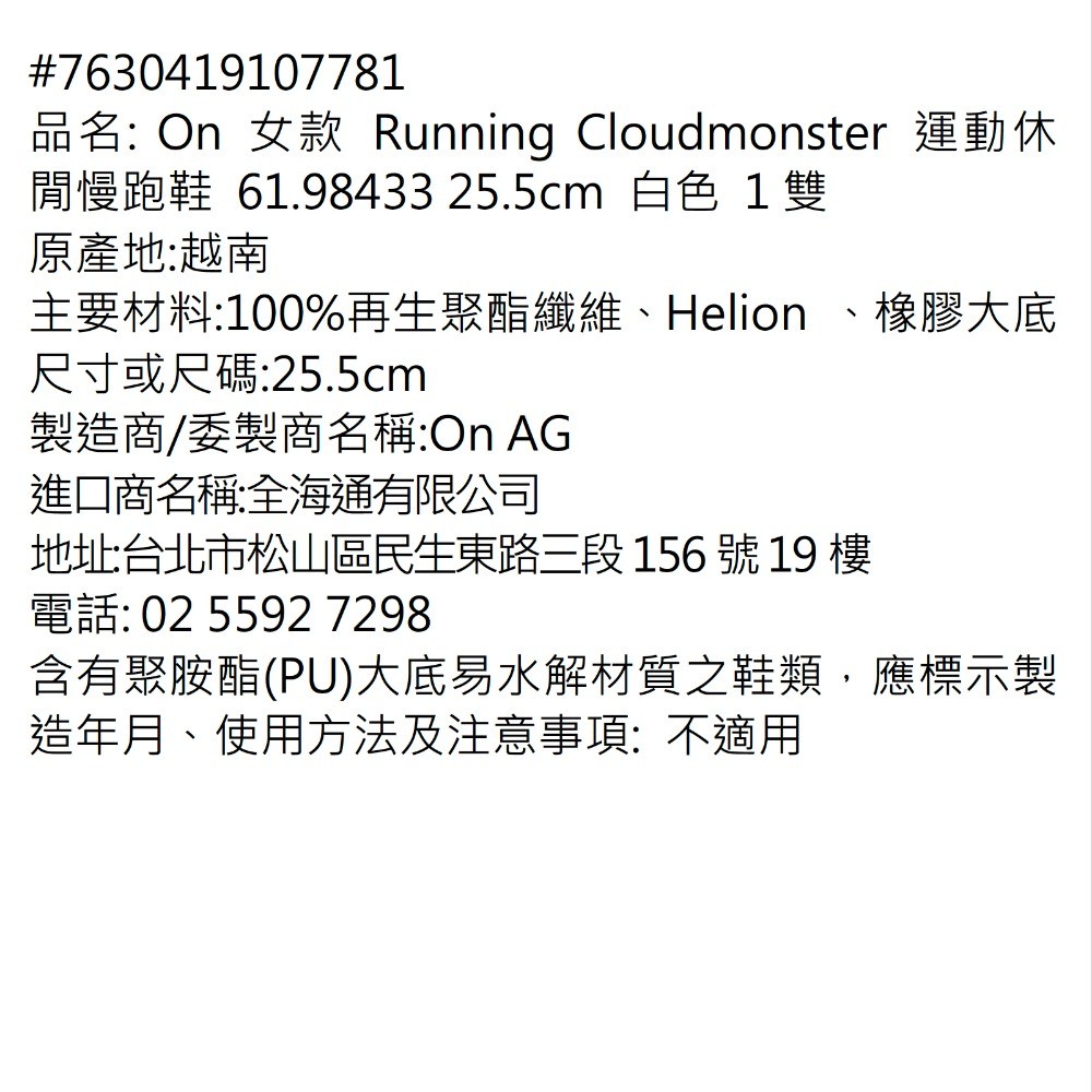 On Running Cloudmonster 運動休閒慢跑鞋,專為女性設計,提供極致舒適和時尚外觀。採用輕盈透氣的材質,確保雙腳在運動時保持乾爽。獨特鞋底設計提供卓越的緩震效果,有效吸收衝擊力,保護您的關節。無論是日常休閒還是運動健身,這款鞋都能讓您展現個人風格,享受舒適的穿著體驗。耐磨材質保證鞋子的耐用性,讓您長時間使用。