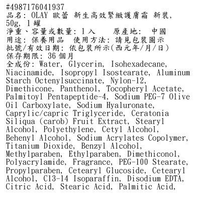 - 全新升級配方,歐蕾緊緻霜能深入滋潤肌膚,感受水嫩彈潤。