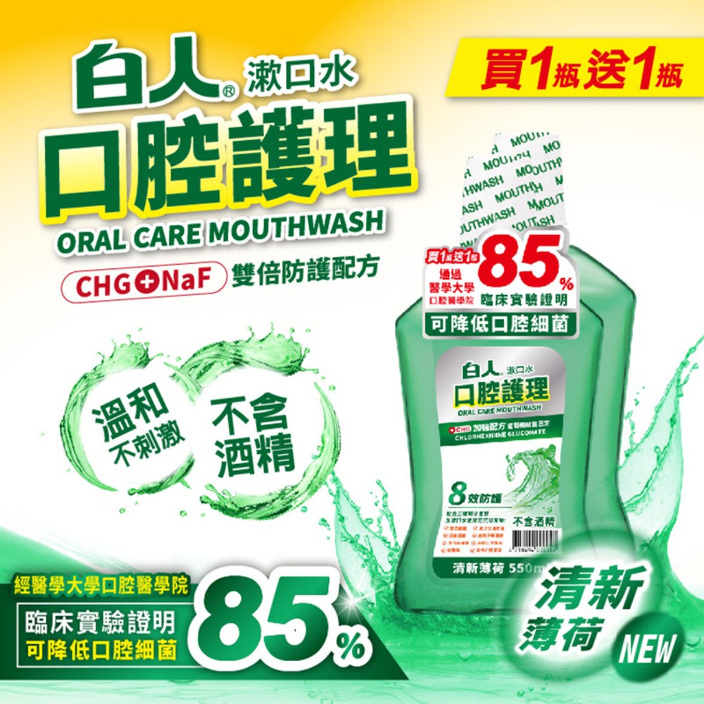 - 不含酒精配方,溫和不刺激口腔黏膜,適合全家大小每日使用。