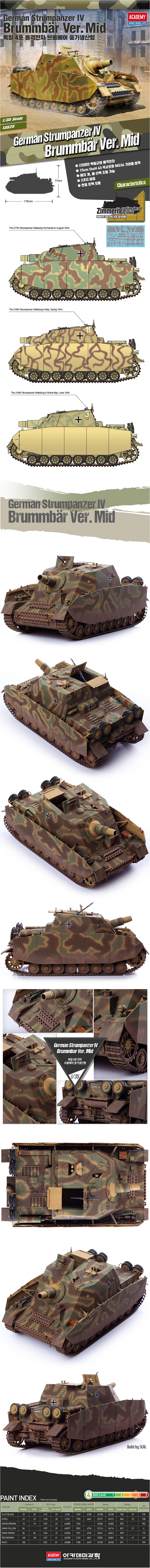 ACADEMY 1/35 比例 Brummbar 坦克車塑膠模型,忠實還原二戰德軍四號突擊戰車「灰熊」中期的細節特徵。模型表面更附有「防磁紋塗層」水貼紙,提升模型的真實感。無論您是軍事模型收藏家,還是二戰歷史愛好者,這款 Brummbar 坦克車模型都是您的不二之選。