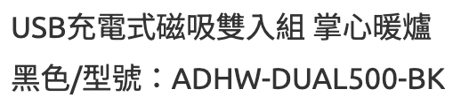 ADAMOUTDOOR USB充電式磁吸掌心暖爐 雙入組 5000mAh 鋰電池, ADHW-DUAL500-BK, 黑色