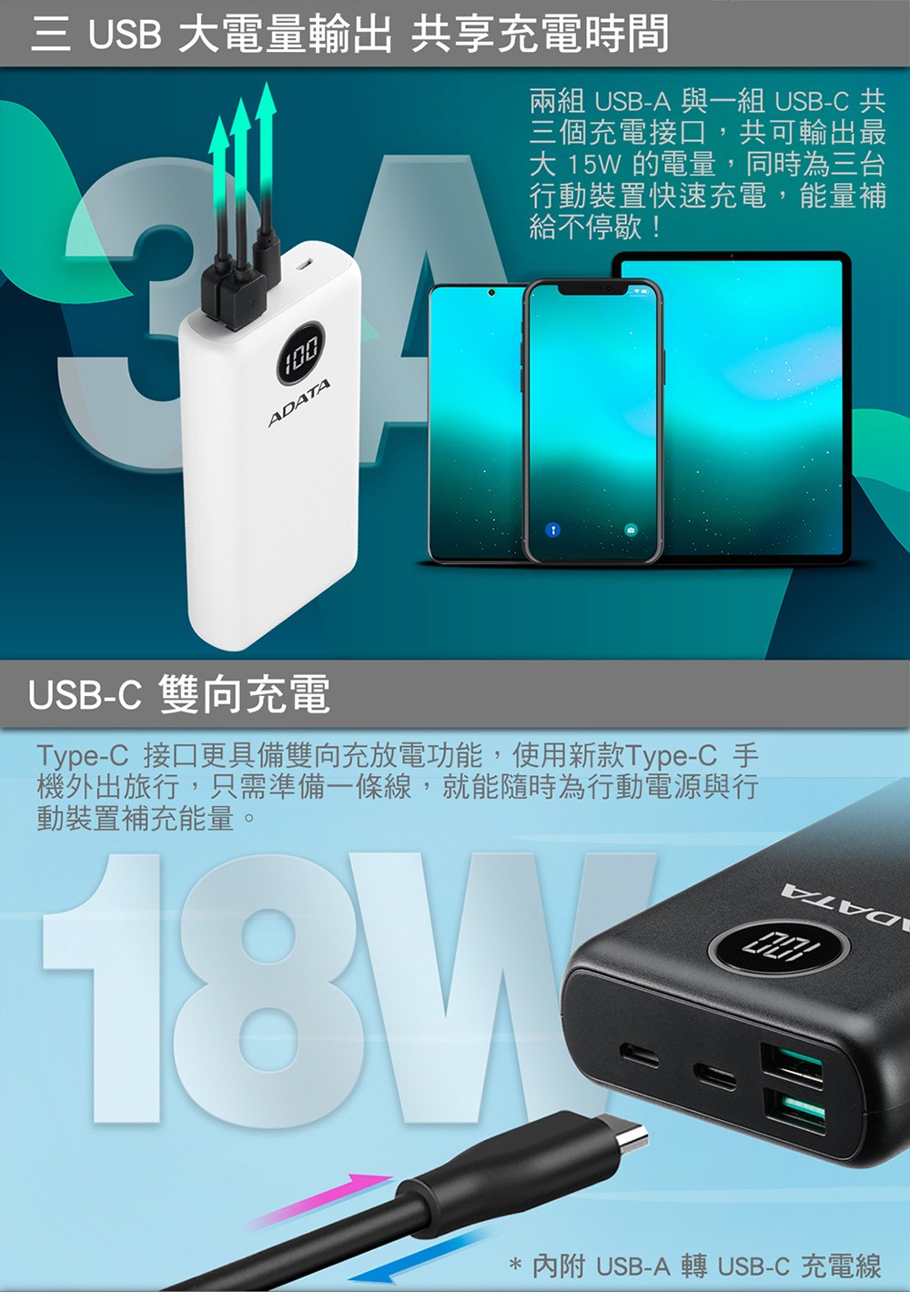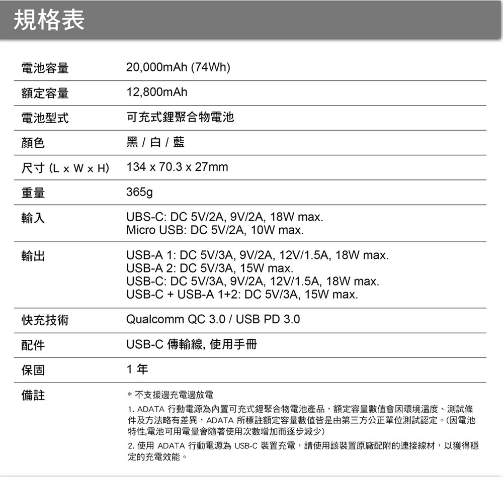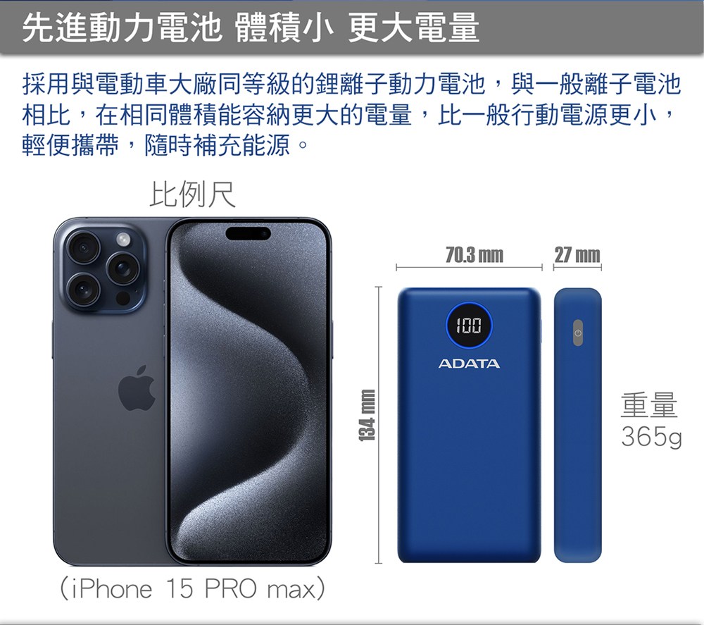 - 威剛快充行動電源,讓您隨時隨地享受快速充電的便利,告別電量焦慮。