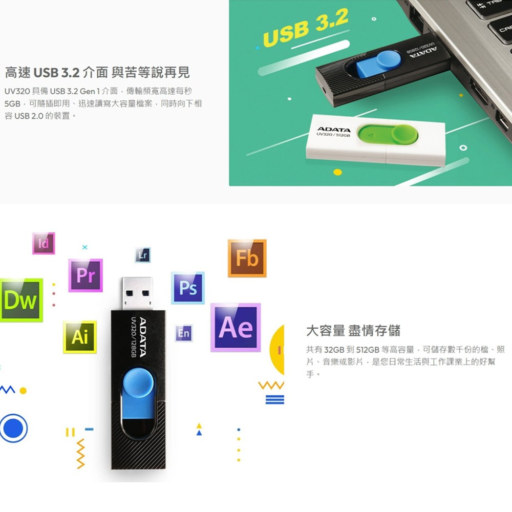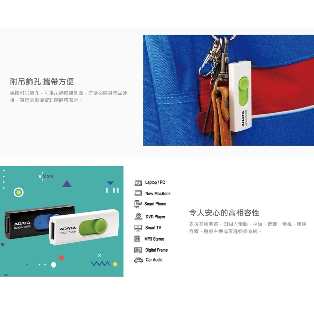 - 威剛UV320隨身碟,滑蓋設計保護您的資料安全,使用更安心。