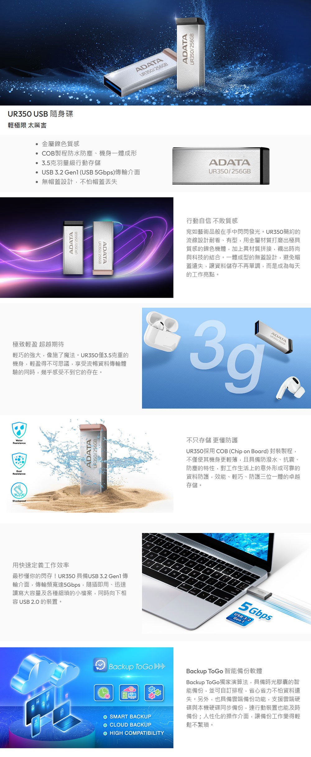ADATA威剛UR350奶茶色隨身碟,採用USB 3.2高速傳輸介面,提供快速的檔案傳輸速度,節省您的寶貴時間。128GB大容量儲存空間,讓您輕鬆儲存各種文件、照片、影片等資料。奶茶色外觀設計,時尚有型,展現個人品味。輕巧便攜的設計,方便您隨身攜帶,隨時隨地存取重要資料。無蓋設計,避免帽蓋遺失的困擾,使用更加方便。