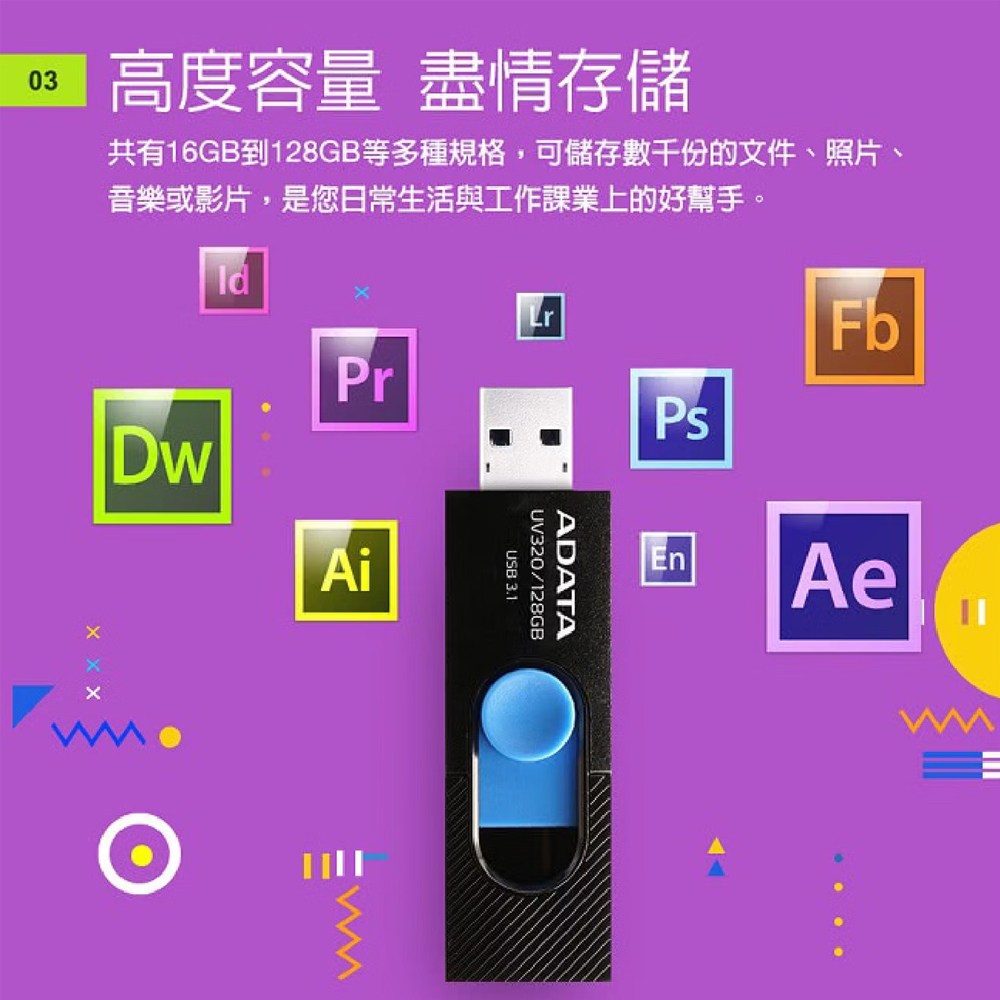 - 輕巧設計的威剛隨身碟,方便您隨身攜帶重要文件與資料,隨時隨地輕鬆存取。