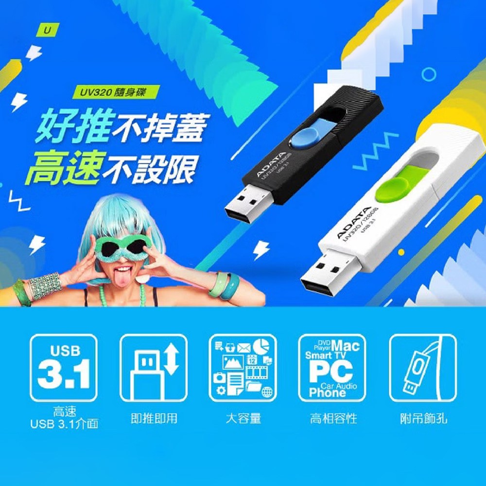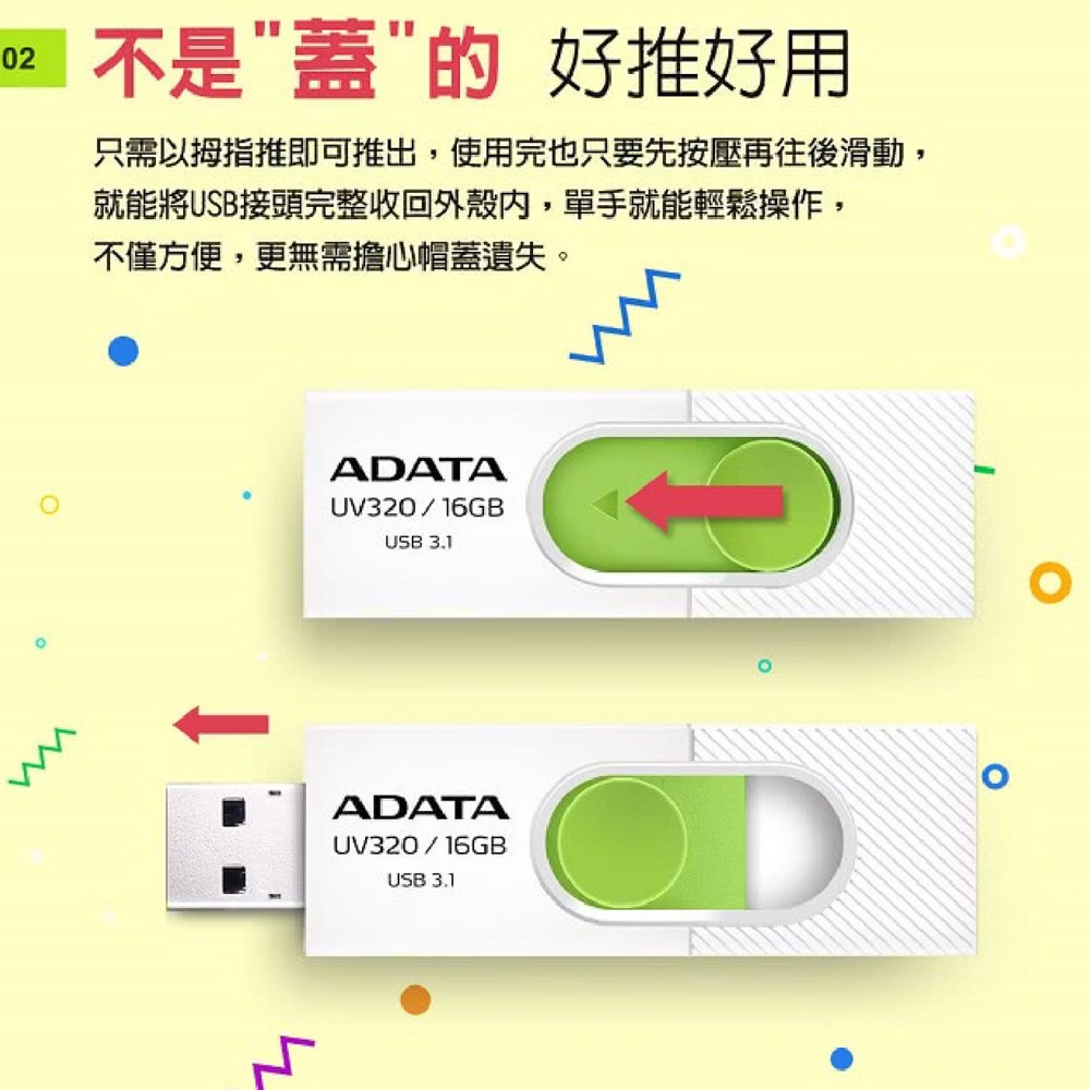 ADATA 威剛 UV320 隨身碟,讓您輕鬆儲存重要資料。這款白色 64GB USB 3.2 隨身碟,提供高速傳輸,節省您的寶貴時間。滑動式設計,免除丟蓋的煩惱,單手即可輕鬆操作。無論是文件、照片或影片,都能快速儲存與分享。輕巧便攜,是您工作和生活上的好幫手,讓您隨時隨地都能存取所需檔案。