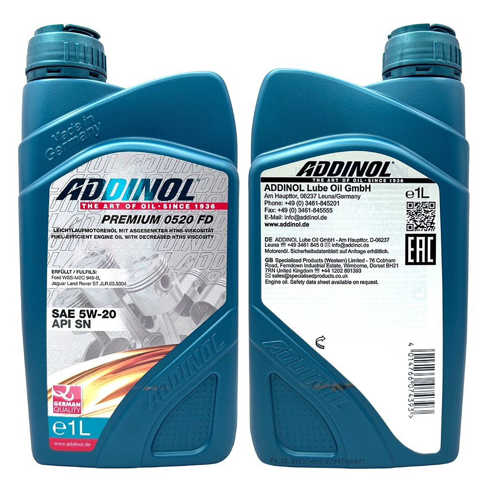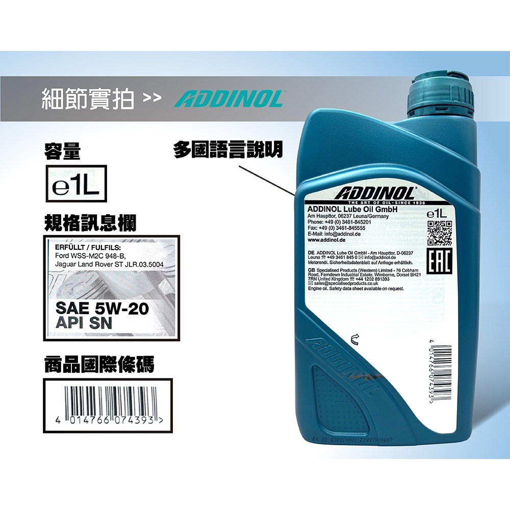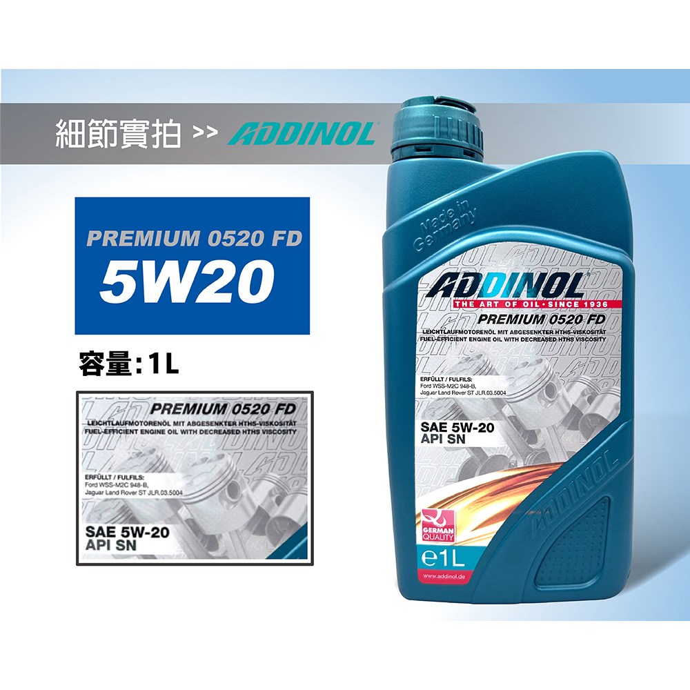 - ADDINOL 5W20全合成機油,提供卓越的引擎保護,延長引擎使用壽命。