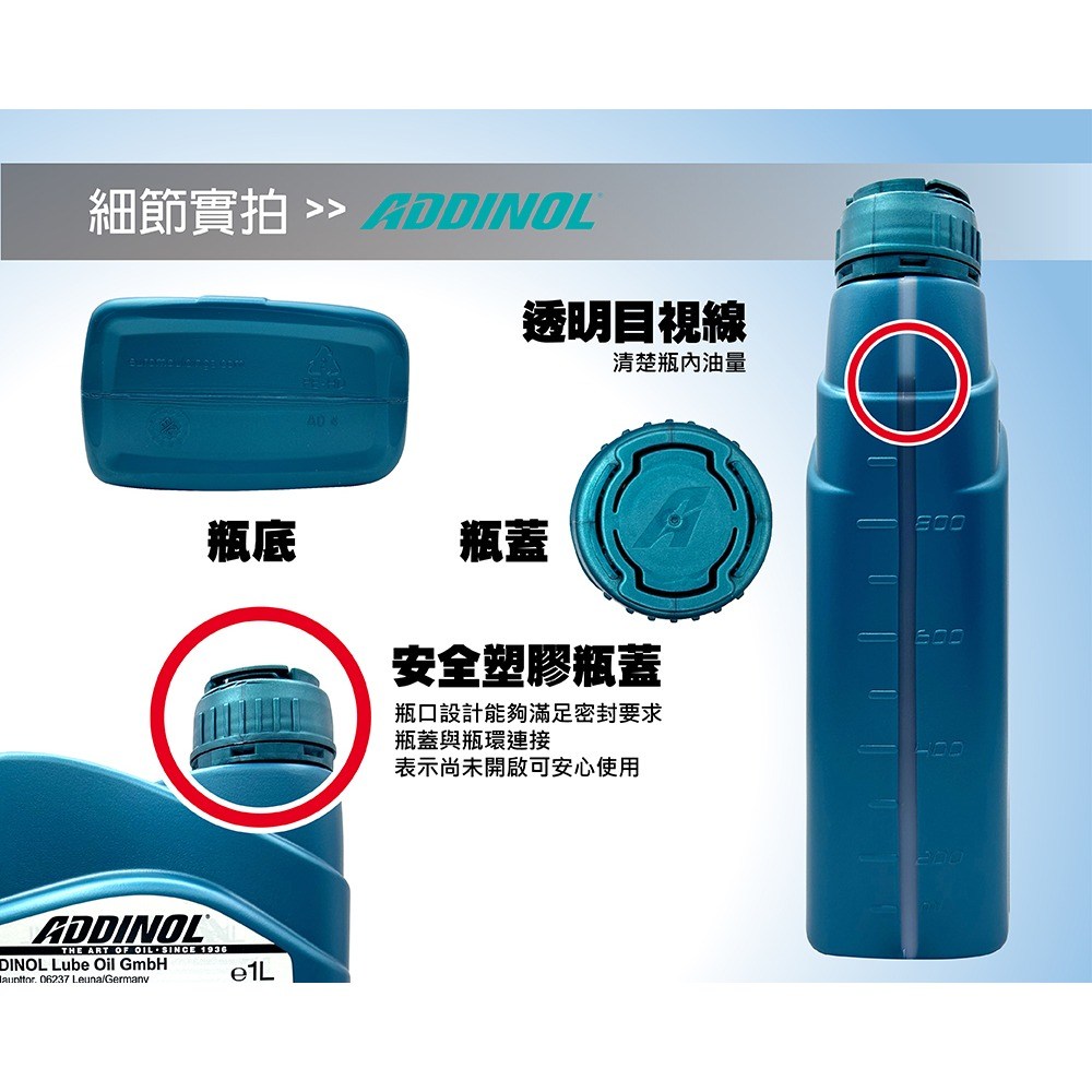 - 採用先進配方,ADDINOL機油有助於提升燃油效率,節省您的油耗開支。