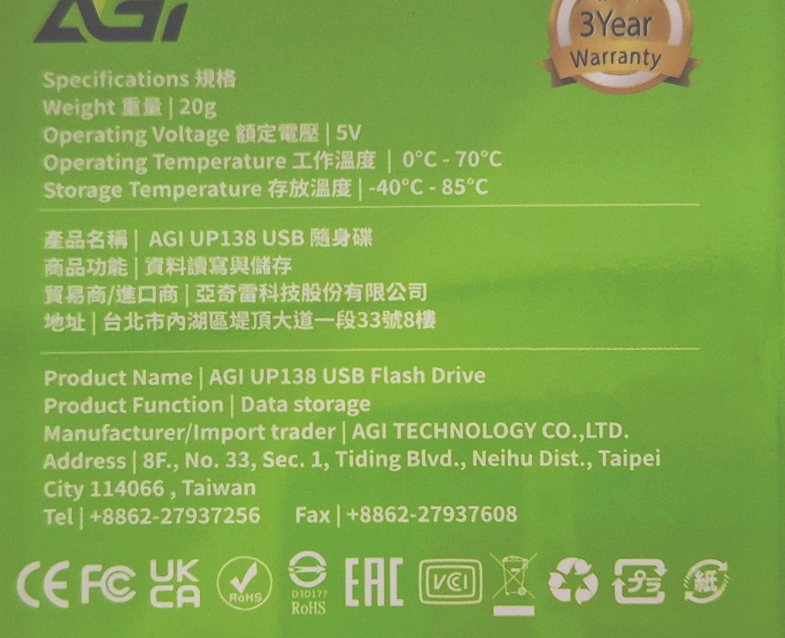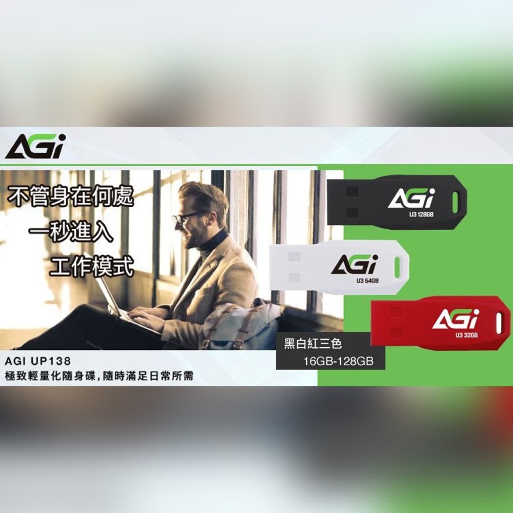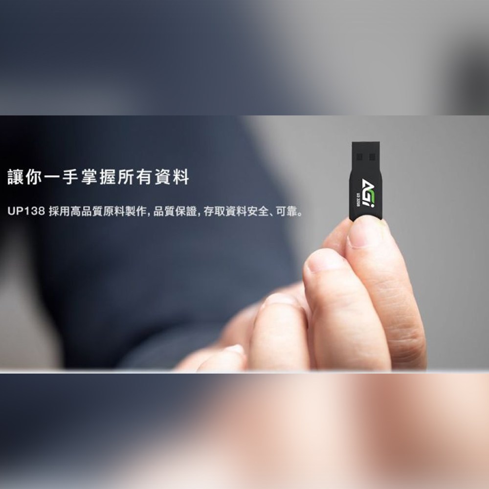 AGI UP138B 32GB USB 3.2 隨身碟,黑色外觀,輕巧僅20克,方便隨身攜帶。採用USB 3.2高速傳輸介面,讓您快速儲存和傳輸檔案,節省寶貴時間。32GB儲存容量,足以應付日常文件、照片和影音資料的需求。Type A接口設計,適用於各種電腦和設備。AGI品牌提供三年保固,品質值得信賴,讓您安心使用。