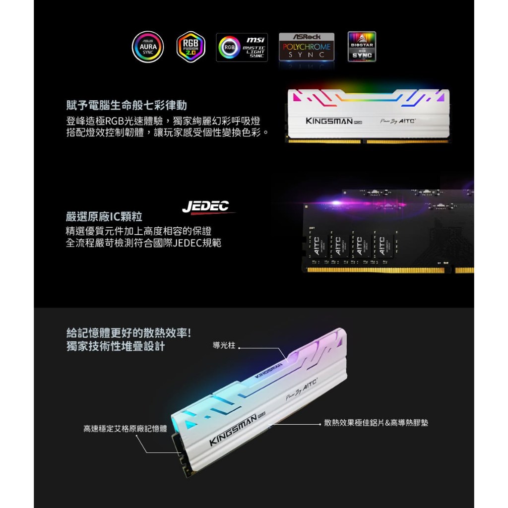 AITC 艾格 KINGSMAN RGB DDR4 32GB 3200 UDIMM 桌上型電競超頻記憶體 炫酷RGB燈效 雙通道設計 嚴選原廠IC顆粒, 1組