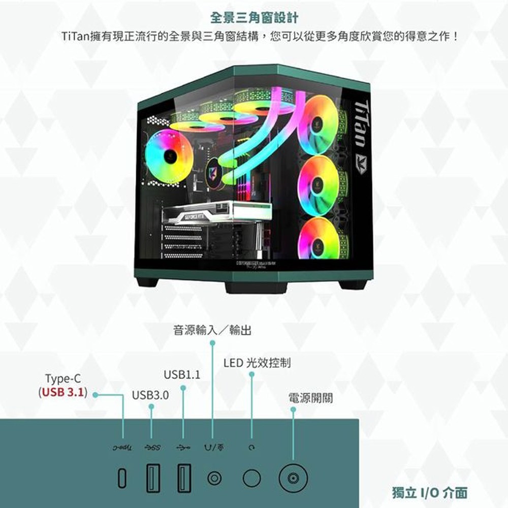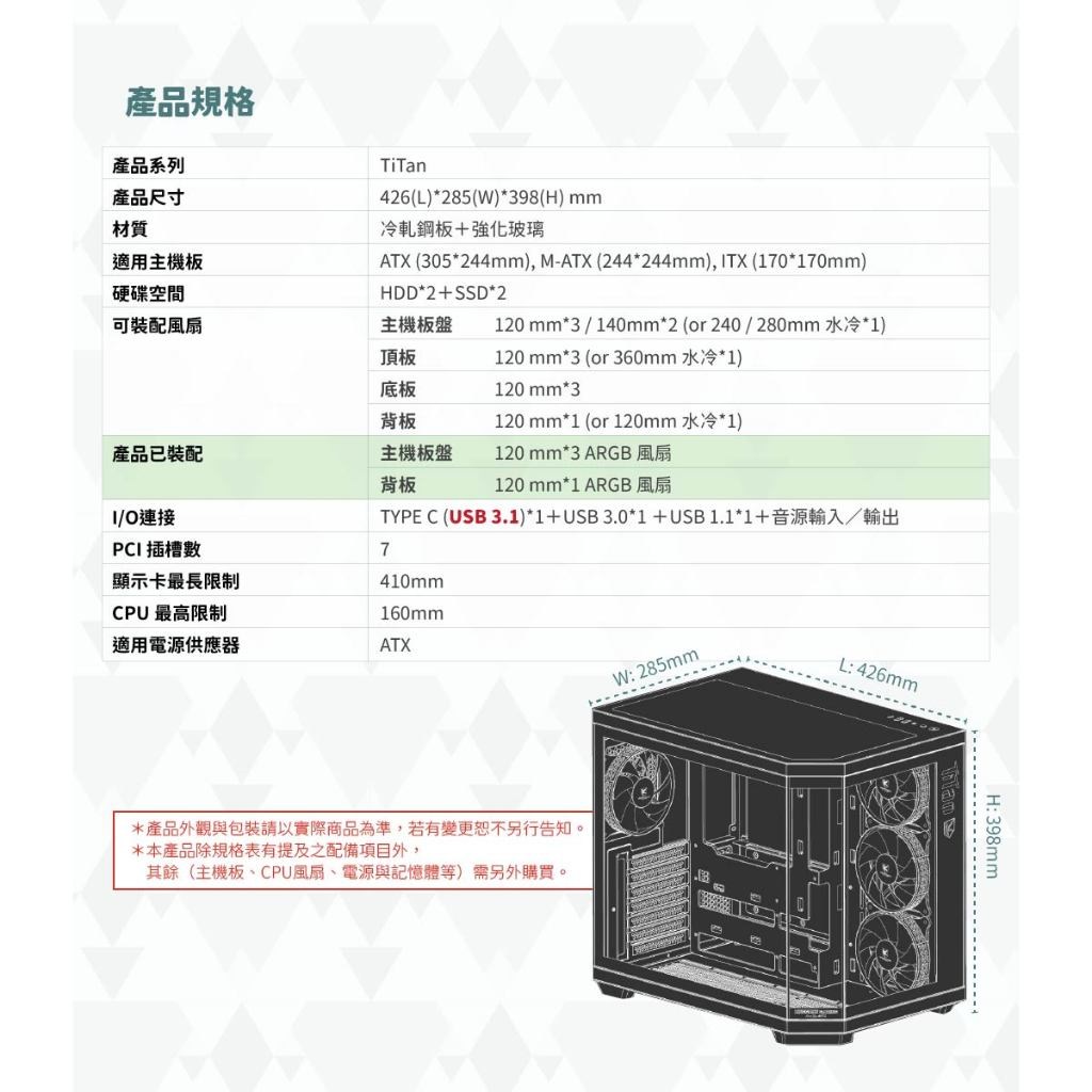 AITC 艾格 KINGSMAN TiTan ARGB電腦電競機殼 全景三角窗設計 支援背插式主機板 內含ARGB風扇