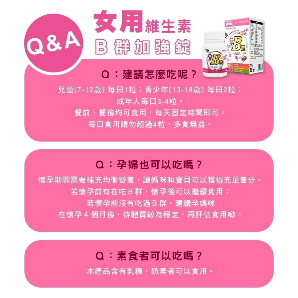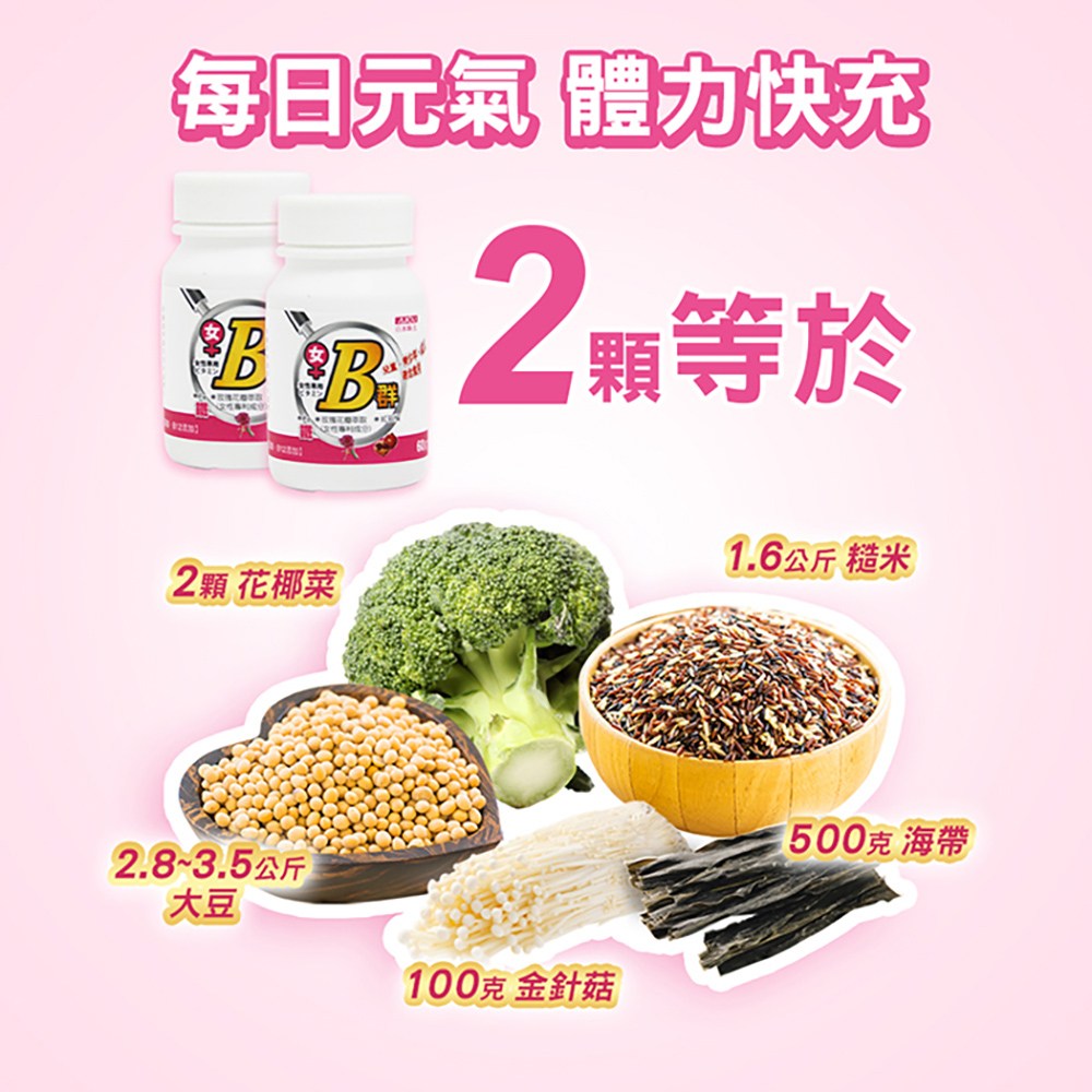 - - 專為女性設計的B群,補充每日所需,維持健康活力充沛。
