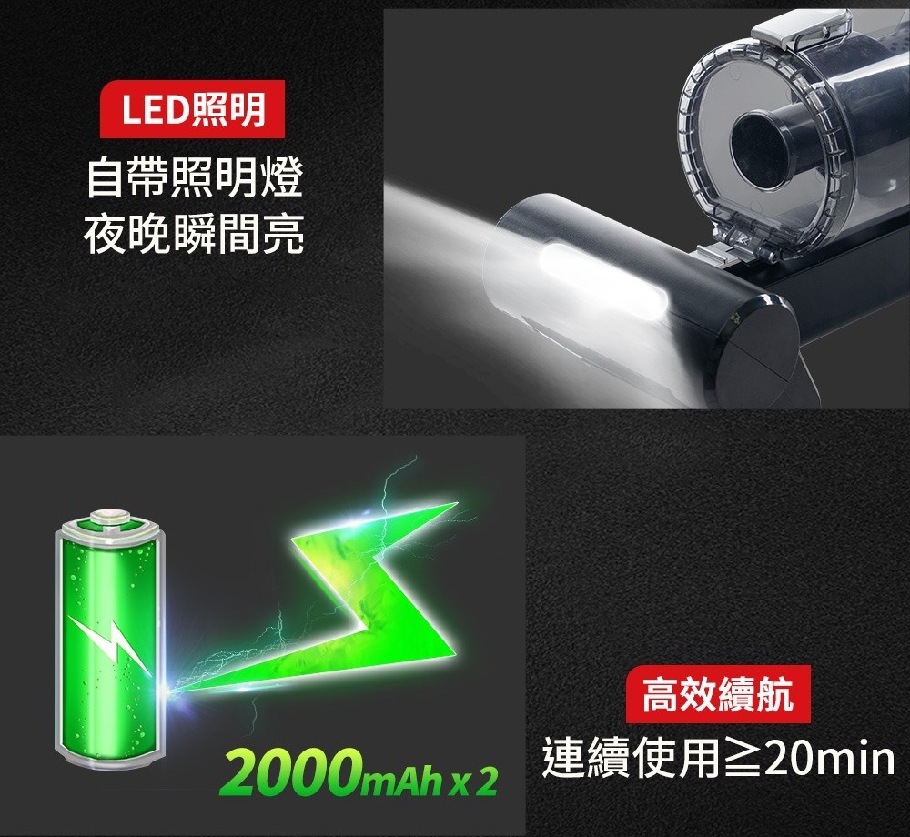 - 無線設計讓您擺脫電線束縛,輕鬆清潔車內各個角落,享受無拘束的清潔體驗。