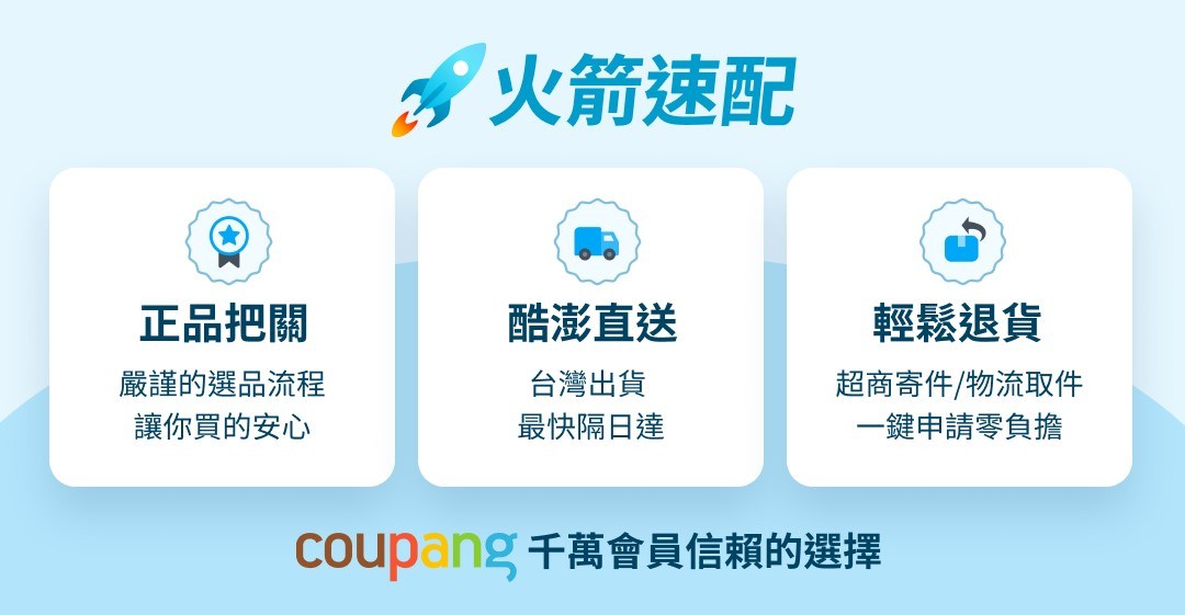 | 運費 | 免運 - 宅配:火箭速配產品訂單價格超過$490免運費 - 超取(全家、7-11):火箭速配產品訂單價格超過$490免運費 - 暫不支援離島配送 |